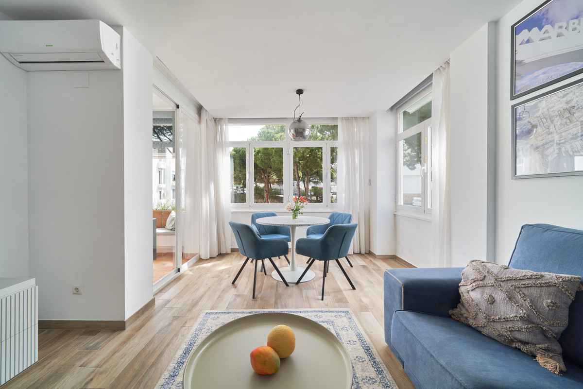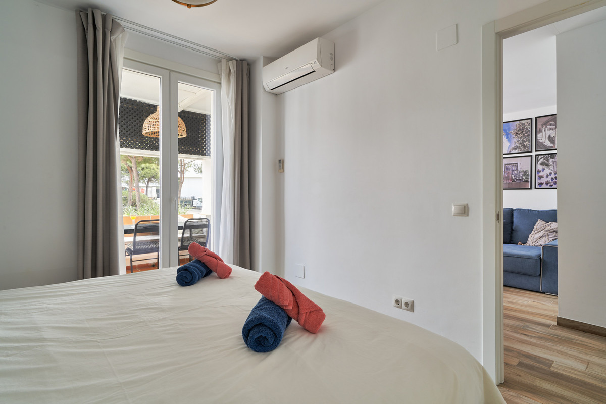 Just moments from the shoreline, this elegant 2-bedroom, 2-bathroom apartment is nestled within the sought-after gated community of Jardines de las Golondrinas, just 200 metres from one of Marbella's finest sandy beaches. Set in the prestigious area of Elviria, and adjacent to the grounds of the iconic Don Carlos Hotel, the apartment offers a refined blend of comfort, privacy, and Mediterranean charm.