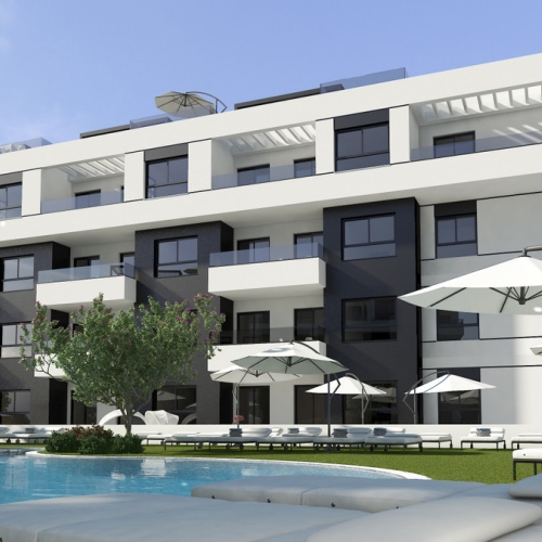 These modern, light-filled residences afford stunning views of the Mar Menor, and their spacious terraces, community pool and children's pool let you enjoy the Mediterranean sun to the fullest.