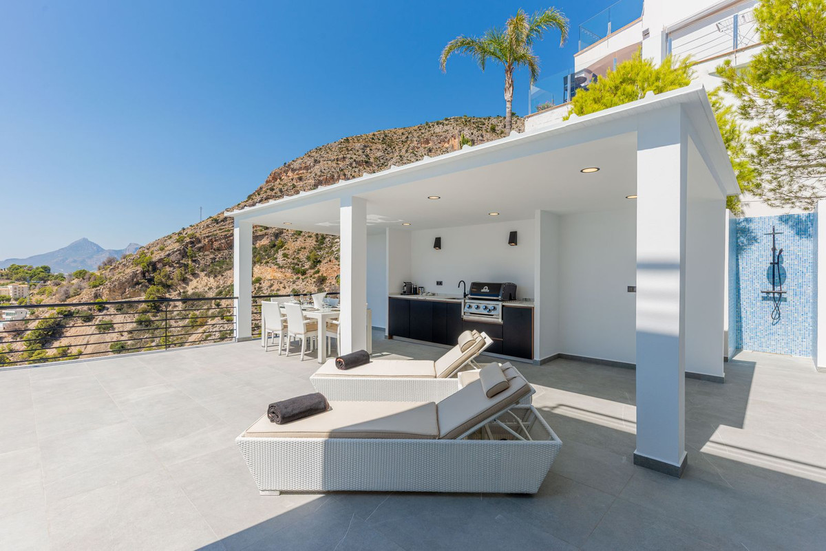 This exceptional villa in Altea Hills has been completely refurbished and extended to the highest standards, presenting itself in immaculate condition both inside and out. Every detail has been thoughtfully designed to combine modern comfort, refined elegance, and spectacular views over the Bay of Altea, the Mediterranean Sea, and the surrounding mountains.