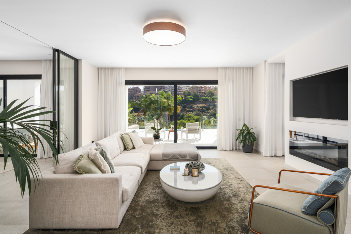 The villa's location in the sought-after Elviria district places it just a five-minute drive from Carrefour supermarket and essential shops, while the golden sands and vibrant atmosphere of Nikki Beach are less than ten minutes away. Families will value the proximity to international schools such as the German International College, reachable within a few minutes by car.