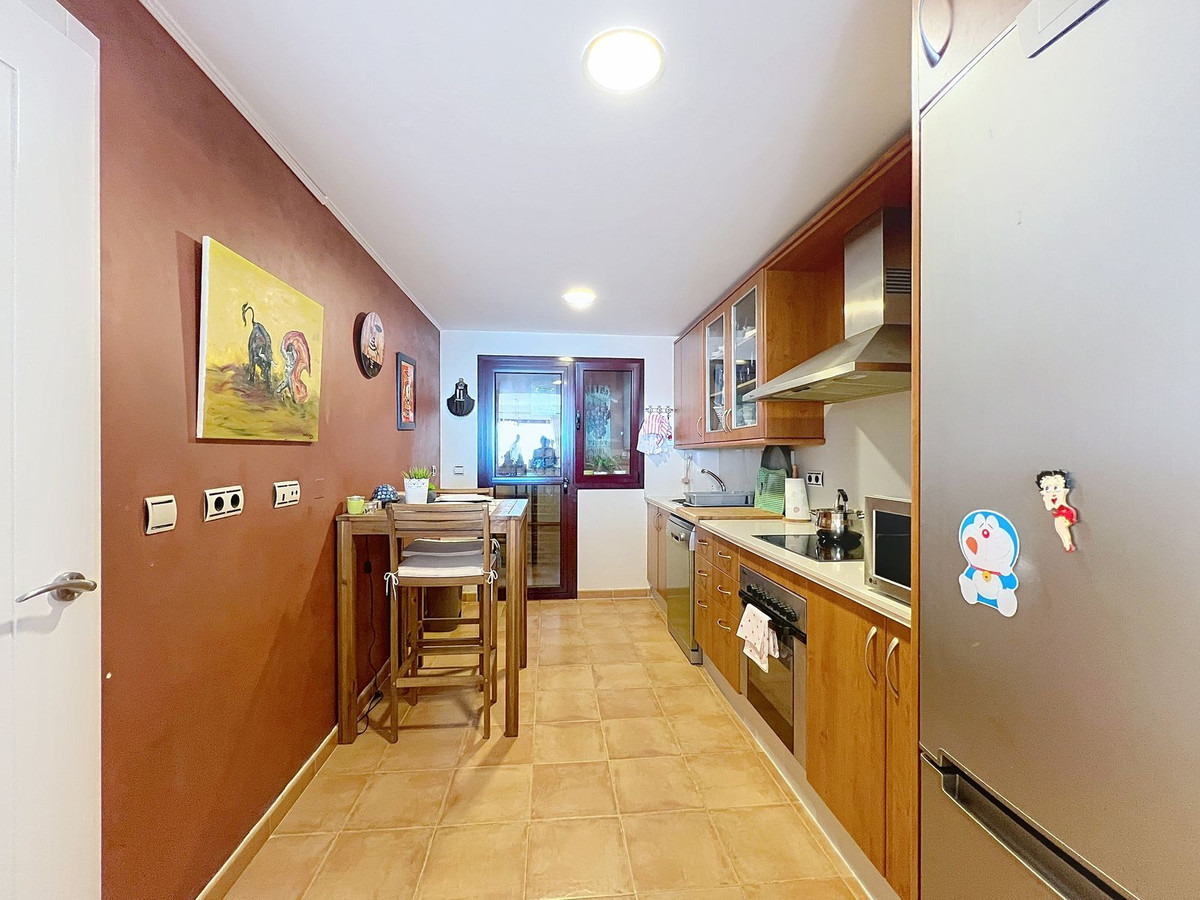 This beautiful penthouse offers 2 bedrooms and 2 bathrooms, with panoramic sea views from the living room, master bedroom, terrace, solarium, and even from the kitchen. The kitchen is fully equipped and features a serving hatch that connects to the living room, allowing you to cook while enjoying the stunning sea views and spending time with your family.
