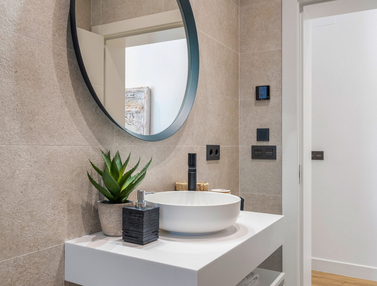 As for the amenities, it has air conditioning with 10 independent Air Zone zones, allowing for a different temperature in each room. It has 3 Mitsubishi units with 30,000 frigories. Everything is controlled from 10 color screens located throughout the house and in each room. It can also be controlled from your mobile phone.