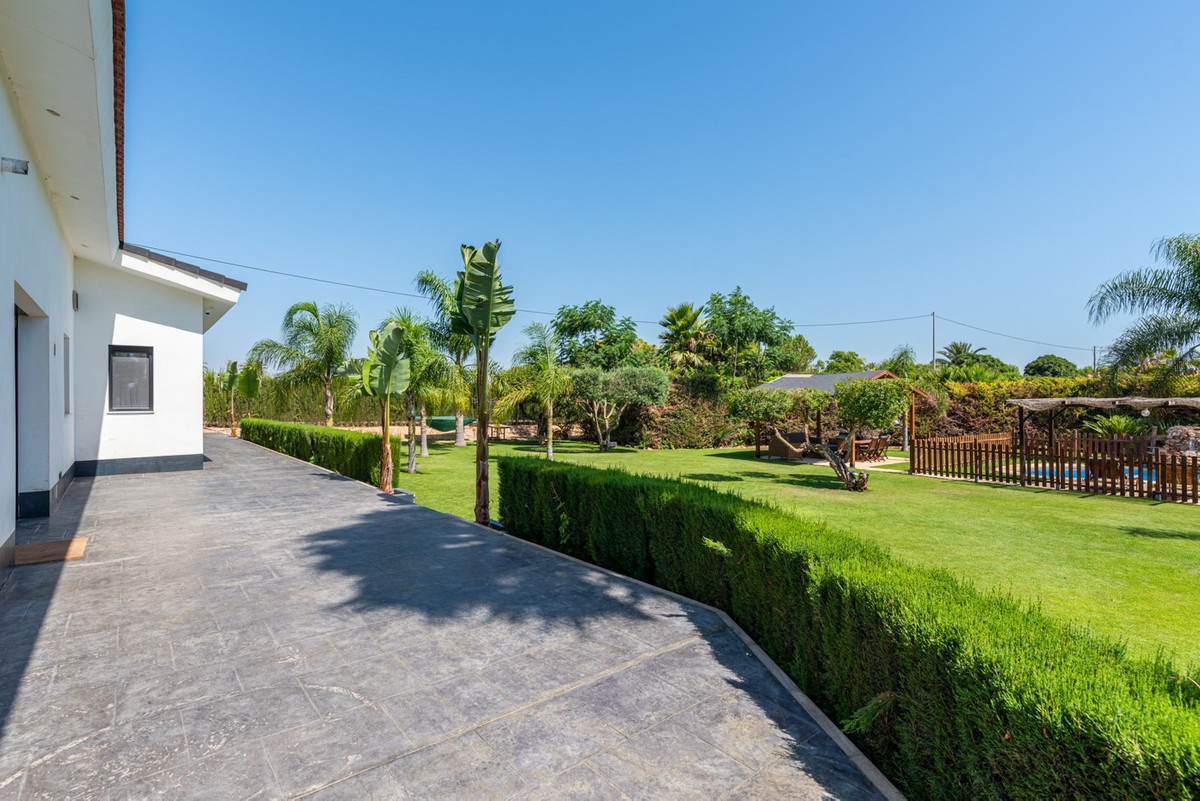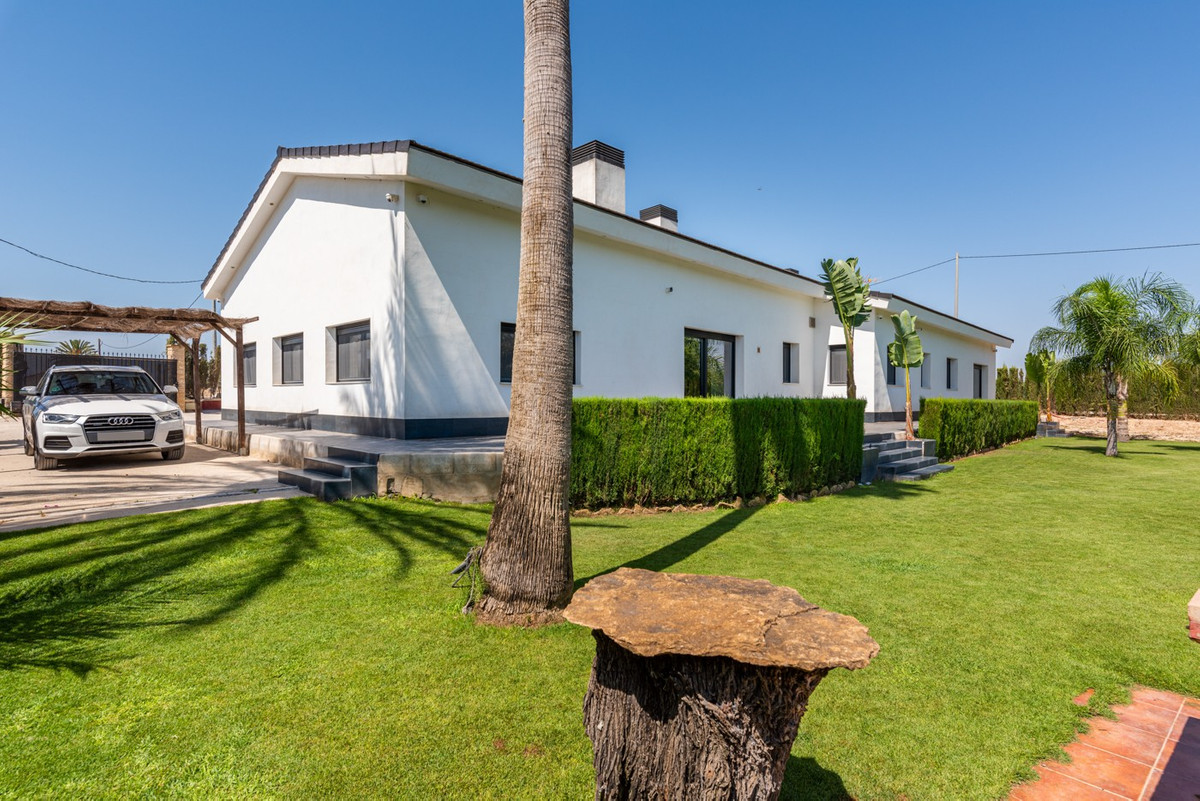 The property has a 17,000-square-meter plot and is fully fenced. It is very well located, just off the highway between Elche and Santa Pola, just 4 km from Santa Pola beach and 6 km from Elche.