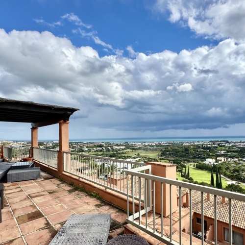 Located in the sought-after Los Flamingos resort near Cancelada, this stylish and spacious penthouse offers a harmonious blend of natural light, stunning views, and comfort. Originally designed with three bedrooms and three bathrooms, the apartment is currently configured as a generous two-bedroom, two-bathroom home. Thanks to its smart layout, it can easily be converted back to the original design—perfect for those in need of additional space for guests, a home office, or family.