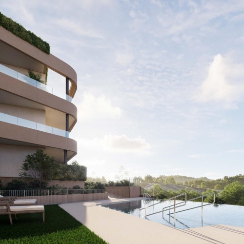 These designer homes feature 2 bathrooms—one of them en suite—as well as terraces, private pools, and patios, depending on the unit type. They come equipped with furnished kitchens, modern appliances, aerothermal climate control, air conditioning, heating, and double glazing. Each property includes a parking space accessible via a vehicle lift and a storage room. The building also includes an elevator, a solar energy system, and boasts a high energy rating.
