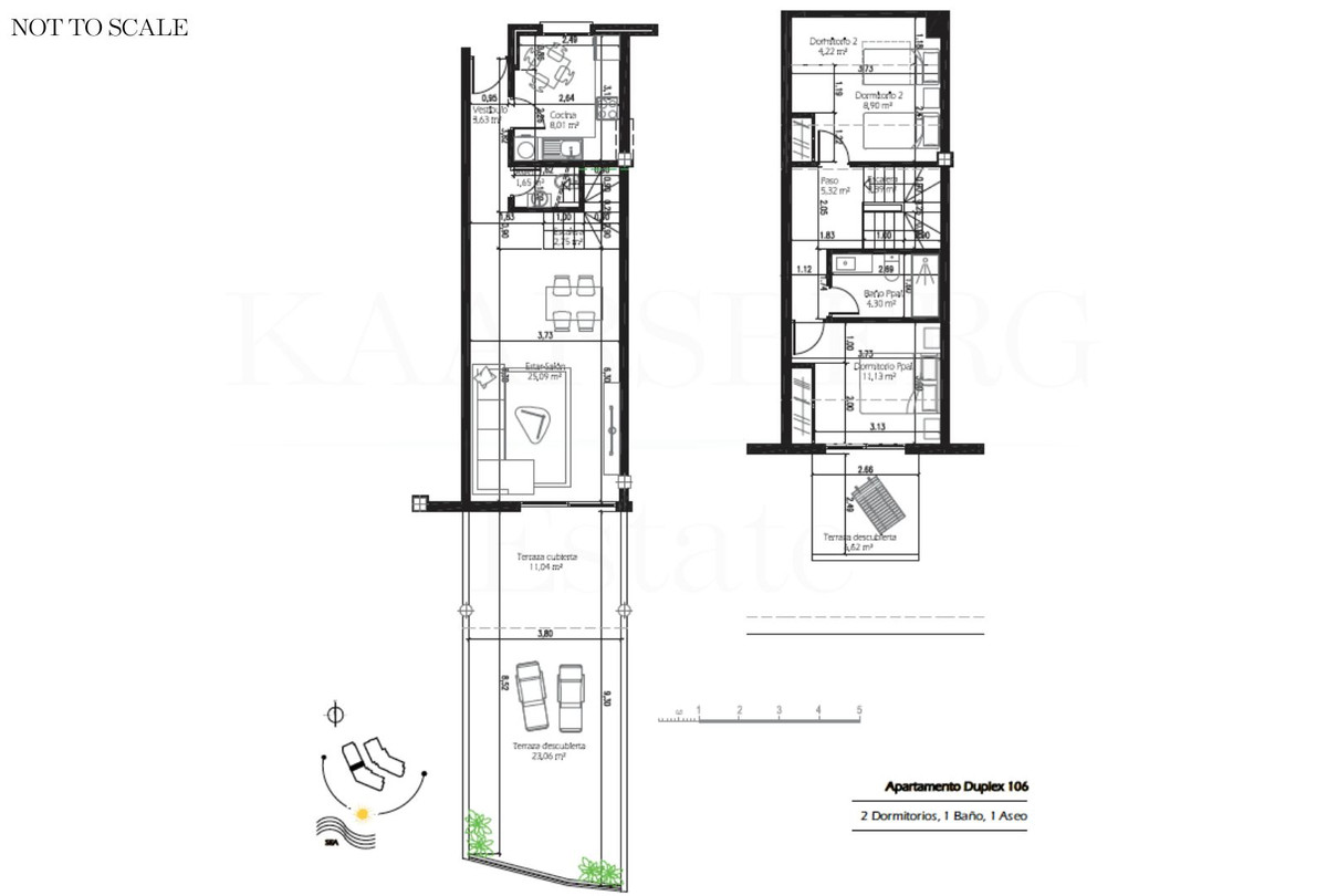 The property, is south-west facing and offers two fantastic terraces, with plenty of opportunities for relaxation and enjoying the sun. One on the 1st floor 11.5 m² with a panoramic view over the Mediterranean Sea and Fuengirola town, on the horizon you can see the mountain peaks from Morocco. On the same floor, you will find two bedrooms and a bathroom, from the master bedroom there is access to the terrace.