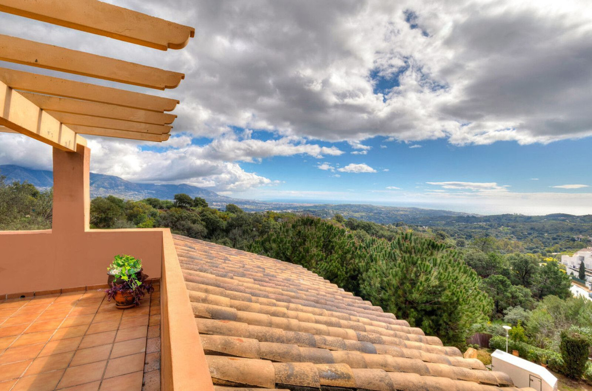 The gated community of El Vicario III offers magnificent views of the surrounding countryside and the Mediterranean Sea, extending towards the coastline of Fuengirola. These panoramic views can be enjoyed from all major rooms of the property, including the spacious south-facing terrace. The community features beautifully maintained gardens, a communal pool, and padel tennis courts for residents' enjoyment.