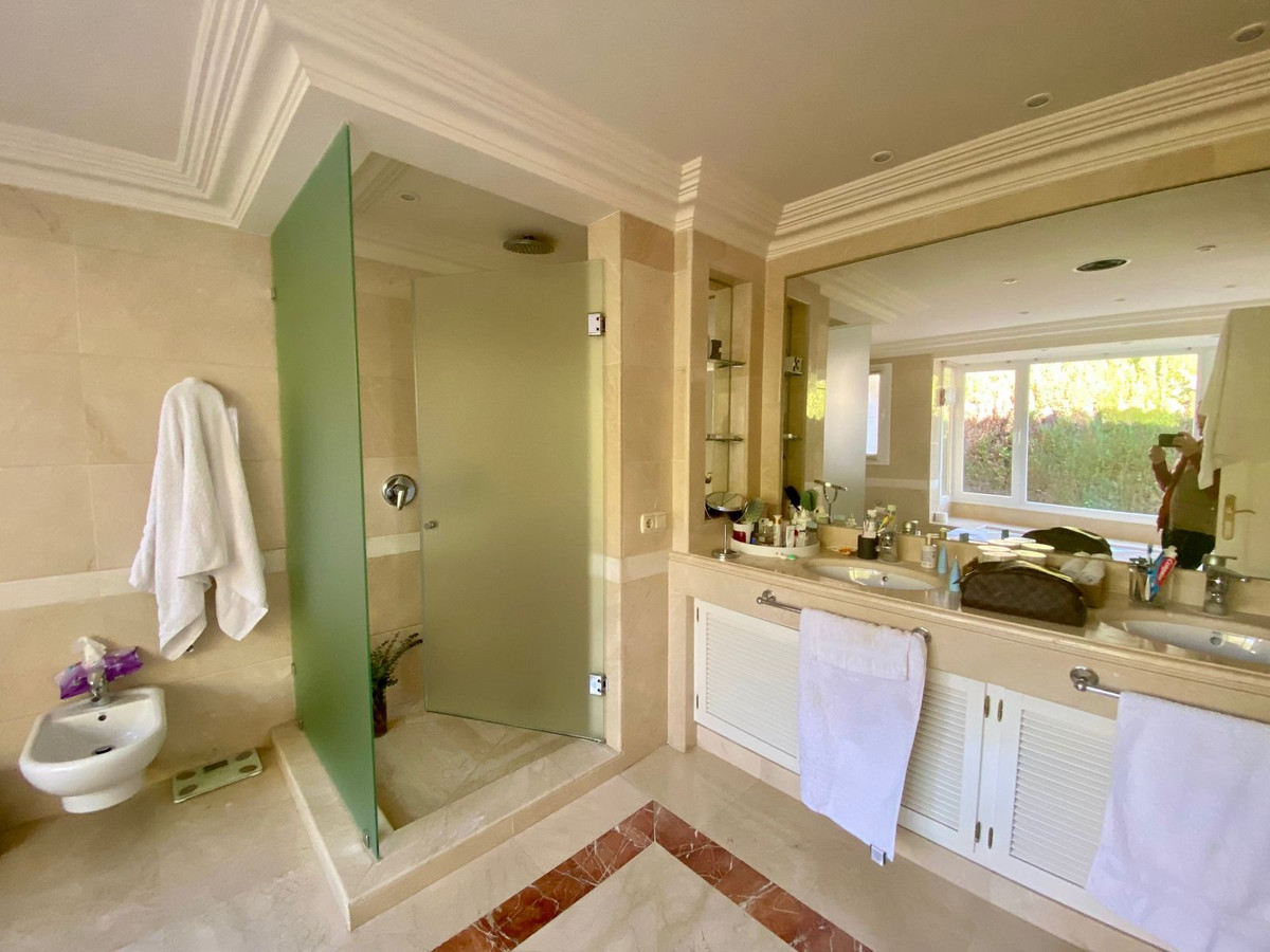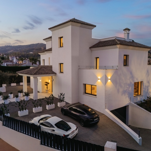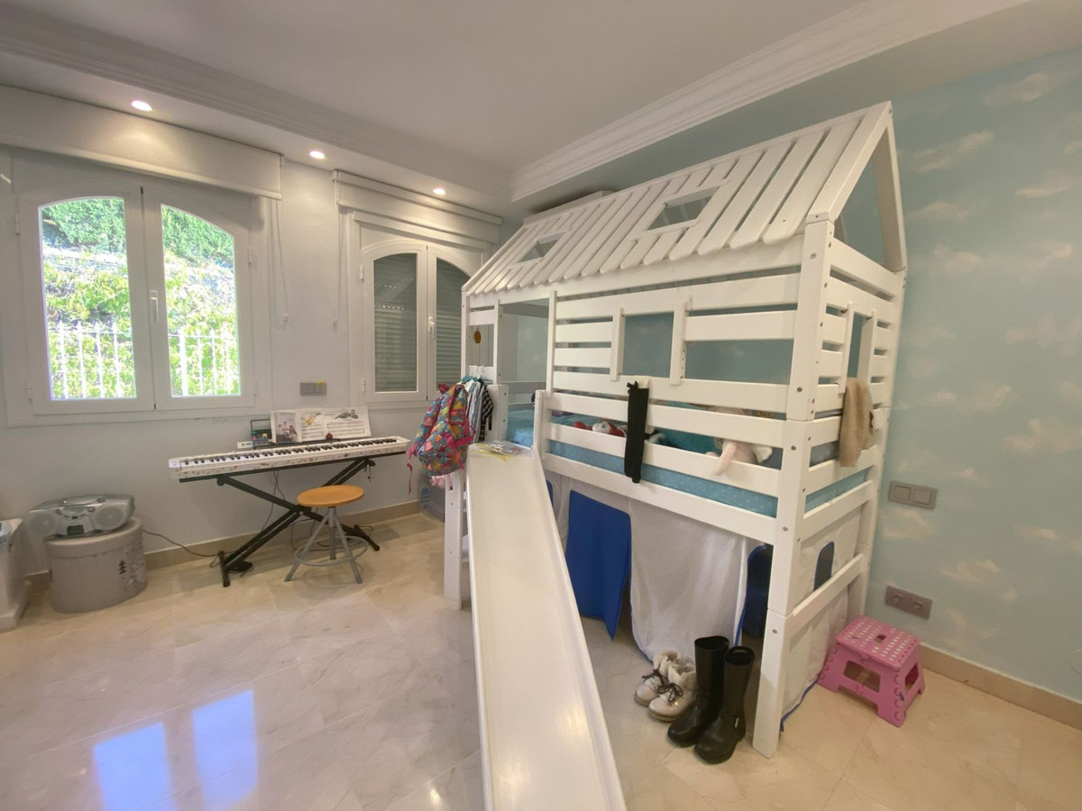 The ground floor unveils a luminous living space, a gourmet kitchen, and the opulent master suite, while the basement hosts a leisure haven with a games room, TV lounge, gym, sauna, laundry, and additional bedrooms. An idyllic family haven in the heart of the verdant paradise of Elviria, this residence promises the perfect blend of elegance and comfort.