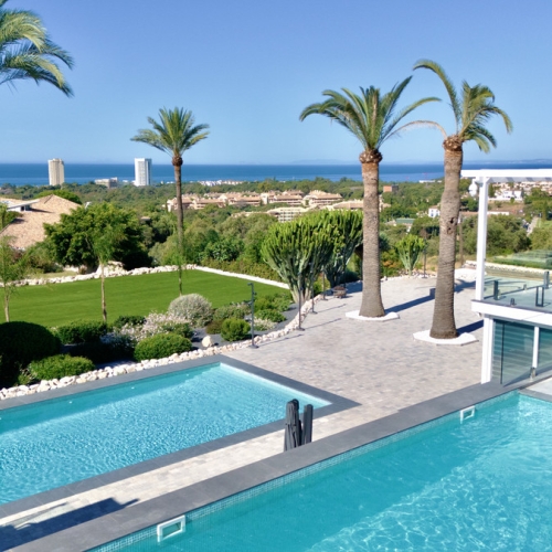 Discover the epitome of luxury living in Elviria, Marbella East, with this captivating south-facing villa boasting unrivaled panoramic views of the Mediterranean Sea.