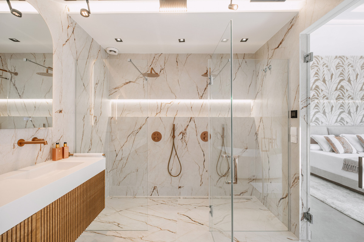 Built for year-round comfort, the penthouse includes underfloor heating throughout, three independent Daikin ducted air conditioning systems offering zoned climate control, thermal break double-glazed windows, and a water filtration system, along with a comprehensive alarm system with video surveillance.