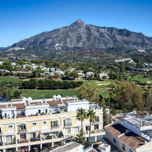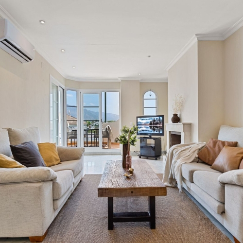 Penthouse Las Lolas is a meticulously renovated duplex penthouse located in the serene residential enclave of Las Lolas in Nueva Andalucía, Marbella. Just minutes from Puerto Banús and the renowned Golf Valley, this residence embodies contemporary Mediterranean elegance with panoramic views of La Concha Mountain and lush garden surroundings.