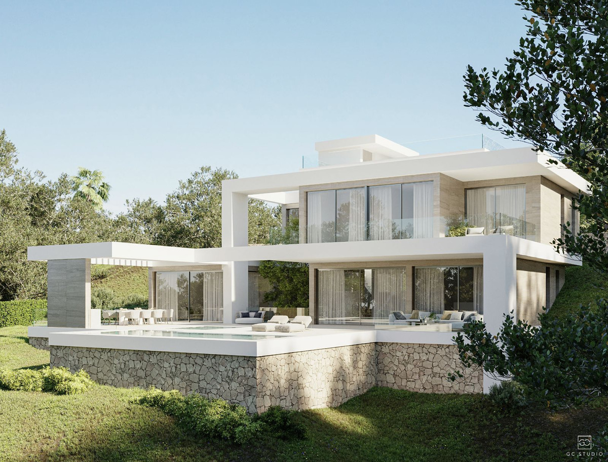 The project includes 4 individual villas developed by one of the most celebrated architects of Marbella. The villas will have spectacular views on the mountain La Concha, the emblem of the Costa del Sol, and the sea views from the rooftop solarium terraces.