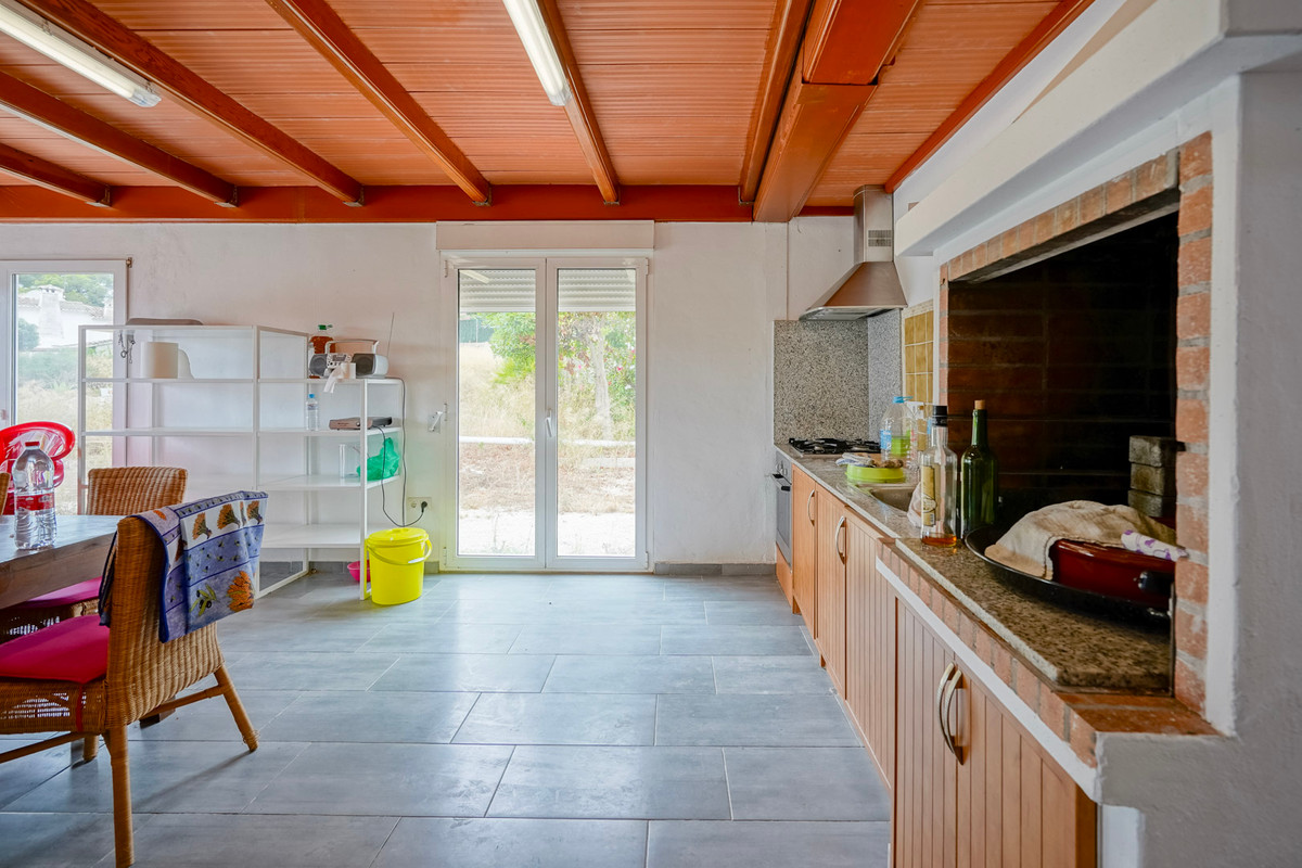 Currently, the plot contains a single-storey villa with a built-up area of 152 m². The property features a living room with open kitchen, a second living-dining room with closed kitchen, three bedrooms, two bathrooms and a patio with a storage room.