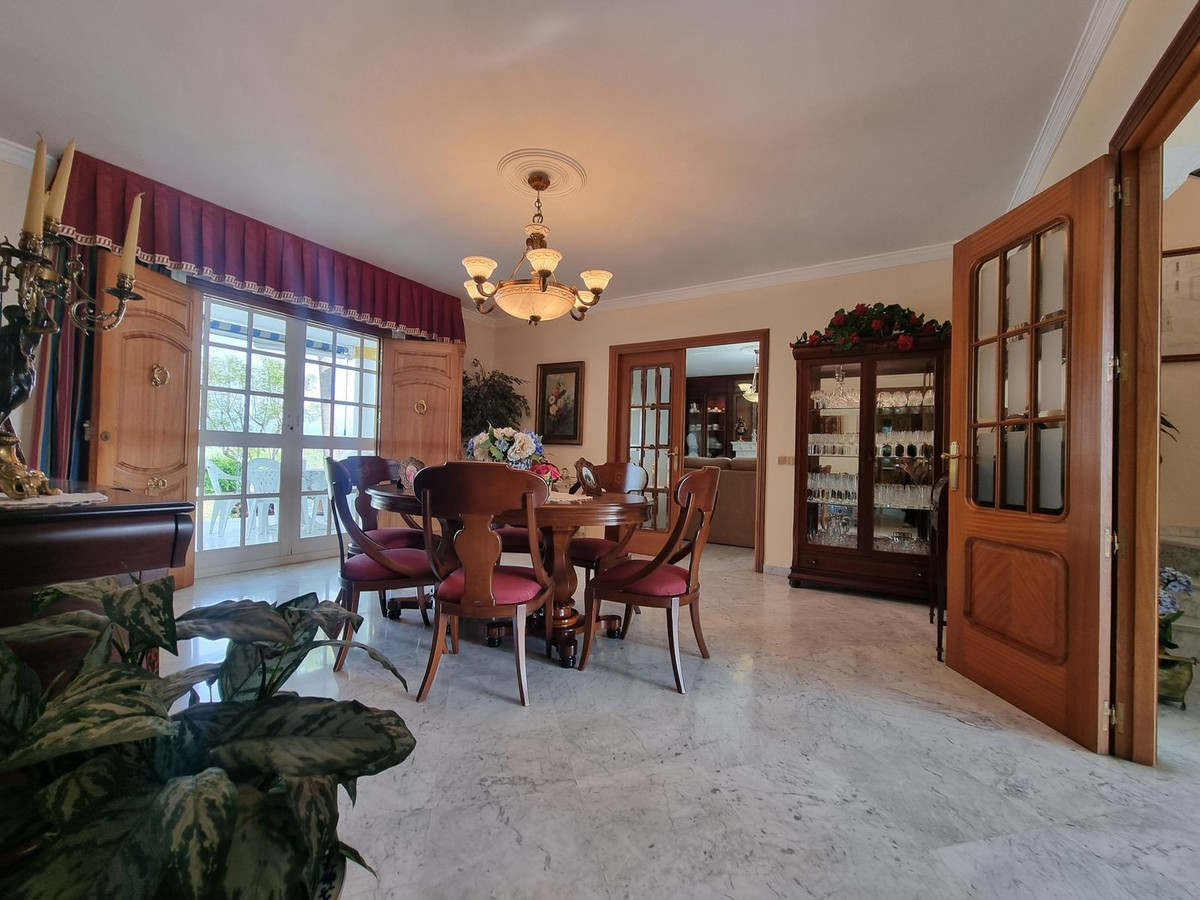 • Ground floor: beautiful entrance hall, large living room with fireplace, and access to a front terrace with views. The dining room also connects to a pleasant rear terrace with direct access to the pool and gardens. This floor also includes an independent kitchen, a full bathroom, and one bedroom.