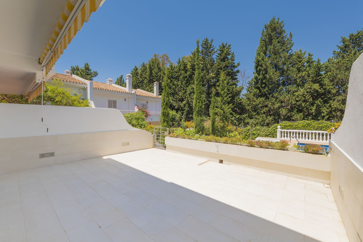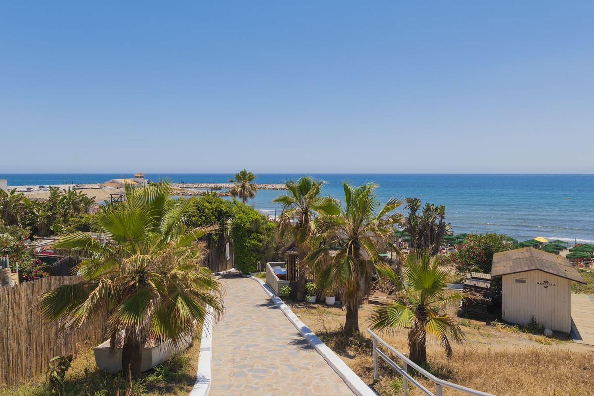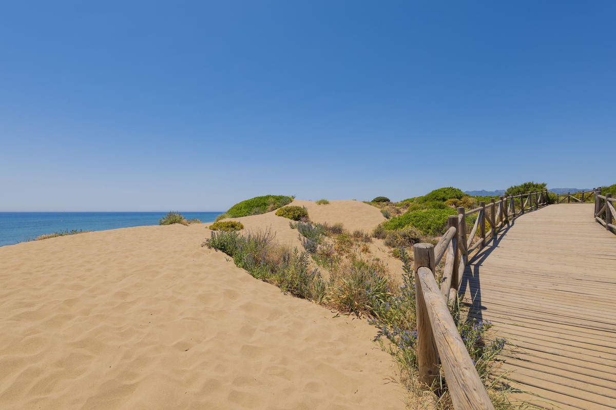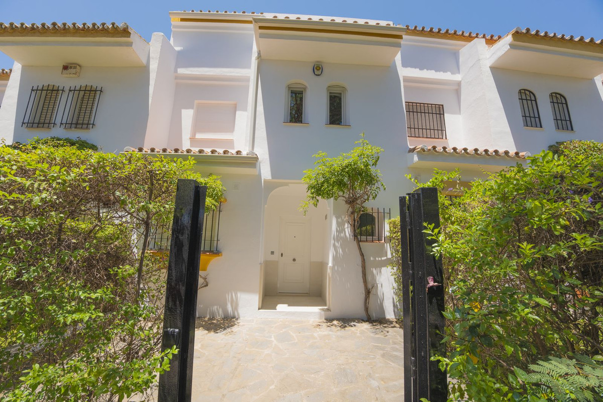 Impressive renovated Town House beachside Artola-Cabopino. This property is nestled in a cosy 16 dwelling urbanization with a gifted location, just 70m from the protected "Dunas de Artola" in Cabopino (sandy dunes protected by law), 200m from the shore and yet with the A7 Road at a mere 2 minutes, hence wonderfully communicated. The house welcomes you through a gated porch, at the entrance we find the lobby that leads to the fully furnished and fitted kitchen with island on the left, guest toilette on the right and storage room; living room with dining area and the stupendous terrace facing the garden and pool. On the first floor, three bedrooms and two bathrooms, one of them en suite plus a small terrace. Eventually, the icing on the cake, a 60m2 superb top floor bedroom with dressing room plus a complete bathroom with bath tube and shower. This property, with underground private parking, has been renovated with attention to detail and features such as underfloor heating in the bathrooms, electric blinds, water softener, numerous A/C hot &cold splits, double glazing throughout, etc. Come and check this example of a Holiday Home that can also be aimed as a First Home as it has amenities and services at hand: pharmacy, shops, restaurants as well as the Port of Cabopino in the vicinity with its plethora of bars and restaurants.