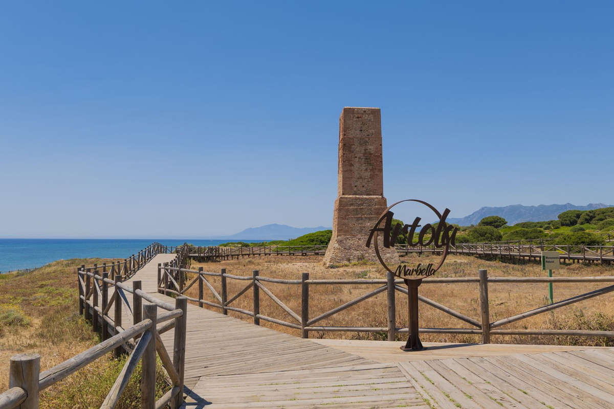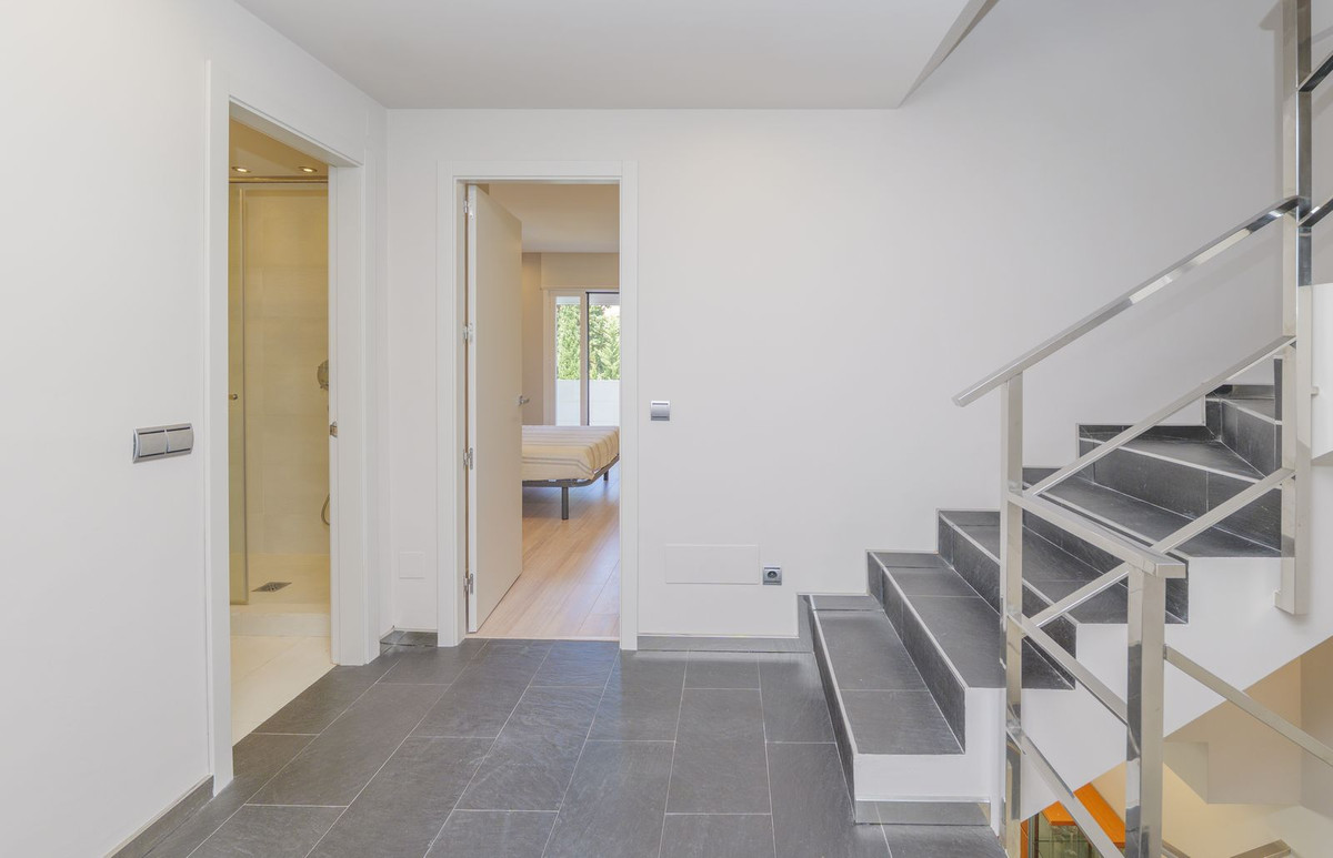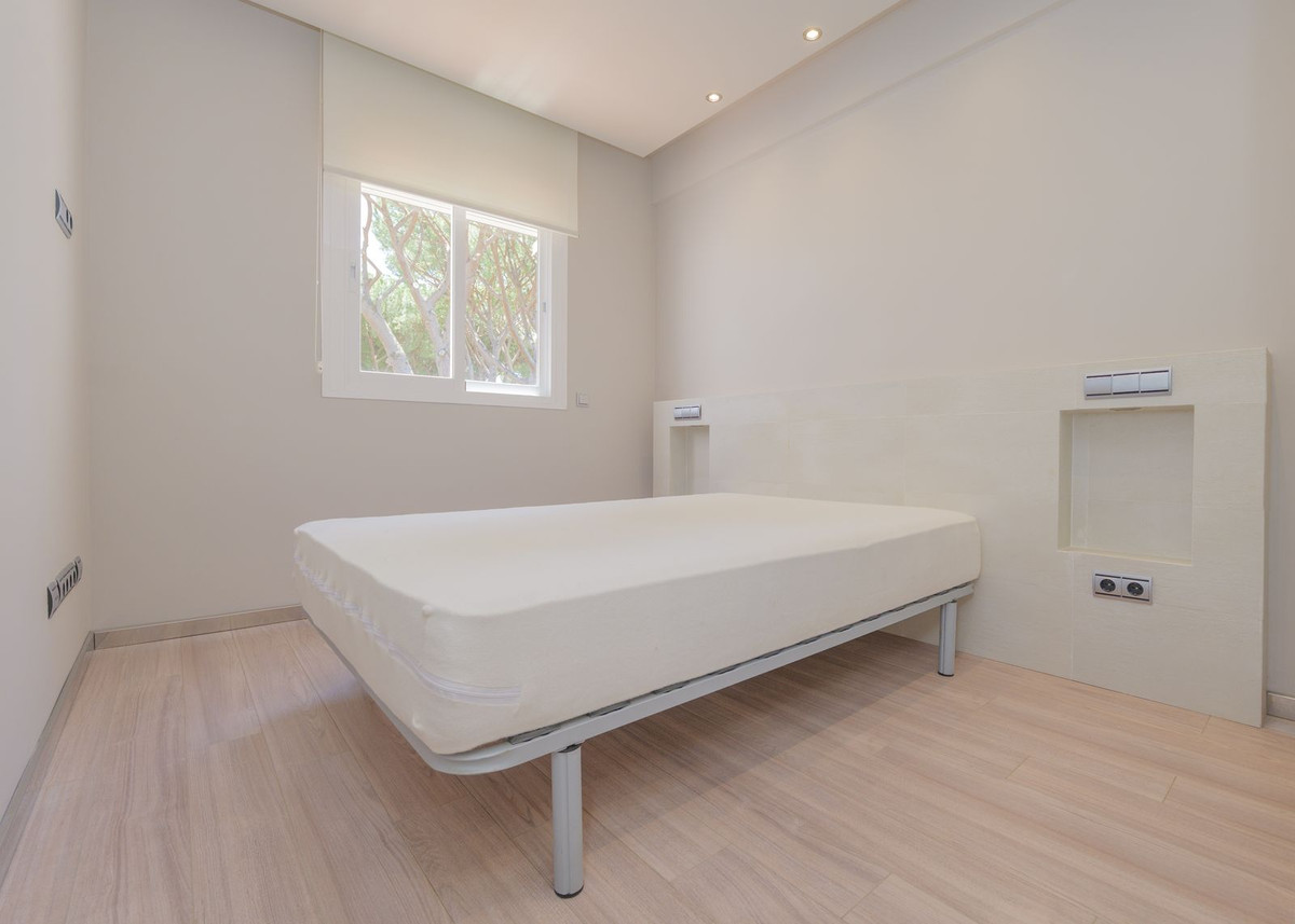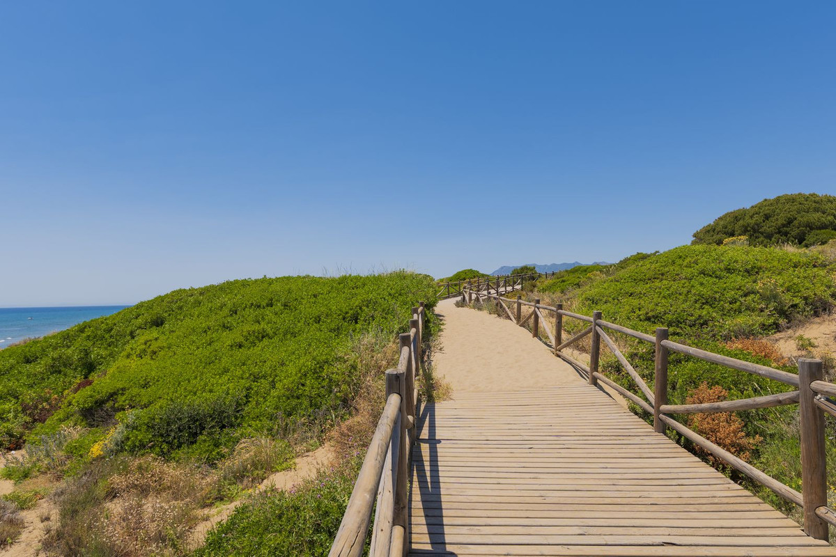 Impressive renovated Town House beachside Artola-Cabopino. This property is nestled in a cosy 16 dwelling urbanization with a gifted location, just 70m from the protected "Dunas de Artola" in Cabopino (sandy dunes protected by law), 200m from the shore and yet with the A7 Road at a mere 2 minutes, hence wonderfully communicated. The house welcomes you through a gated porch, at the entrance we find the lobby that leads to the fully furnished and fitted kitchen with island on the left, guest toilette on the right and storage room; living room with dining area and the stupendous terrace facing the garden and pool. On the first floor, three bedrooms and two bathrooms, one of them en suite plus a small terrace. Eventually, the icing on the cake, a 60m2 superb top floor bedroom with dressing room plus a complete bathroom with bath tube and shower. This property, with underground private parking, has been renovated with attention to detail and features such as underfloor heating in the bathrooms, electric blinds, water softener, numerous A/C hot &cold splits, double glazing throughout, etc. Come and check this example of a Holiday Home that can also be aimed as a First Home as it has amenities and services at hand: pharmacy, shops, restaurants as well as the Port of Cabopino in the vicinity with its plethora of bars and restaurants.