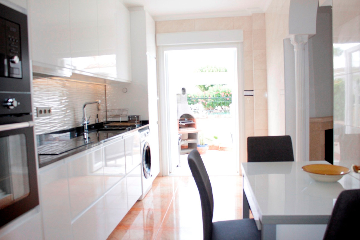 This charming 2-bedroom home is ideally located in Sol Golf I, just a short stroll from Villamartín Plaza and the golf course. Set on a generous 143 m² low-maintenance plot, the property boasts a private 10×5 m swimming pool, BBQ area, and a covered terrace with glass curtains, perfect for year-round outdoor living.