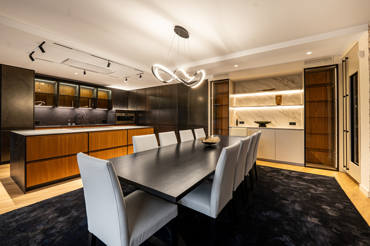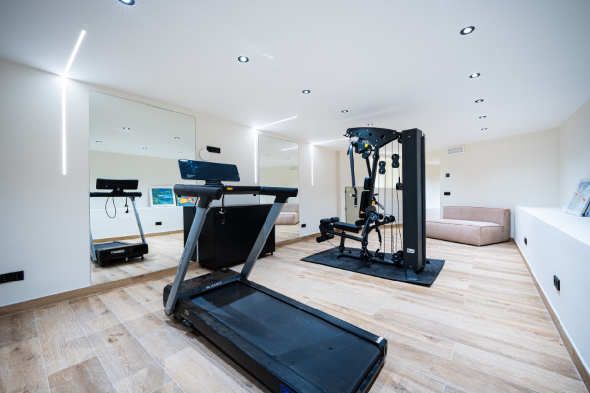 Upstairs, the master suite spans the entire floor, with a walk-in wardrobe, dual bathrooms and a private terrace overlooking the Mediterranean. The lower level features a guest suite with its own kitchen, a gym and a climate-controlled wine cellar. With solar panels, underfloor heating and parking for several cars, Villa Royale is a rare blend of elegance, privacy and effortless luxury in one of Marbella's most desirable locations.