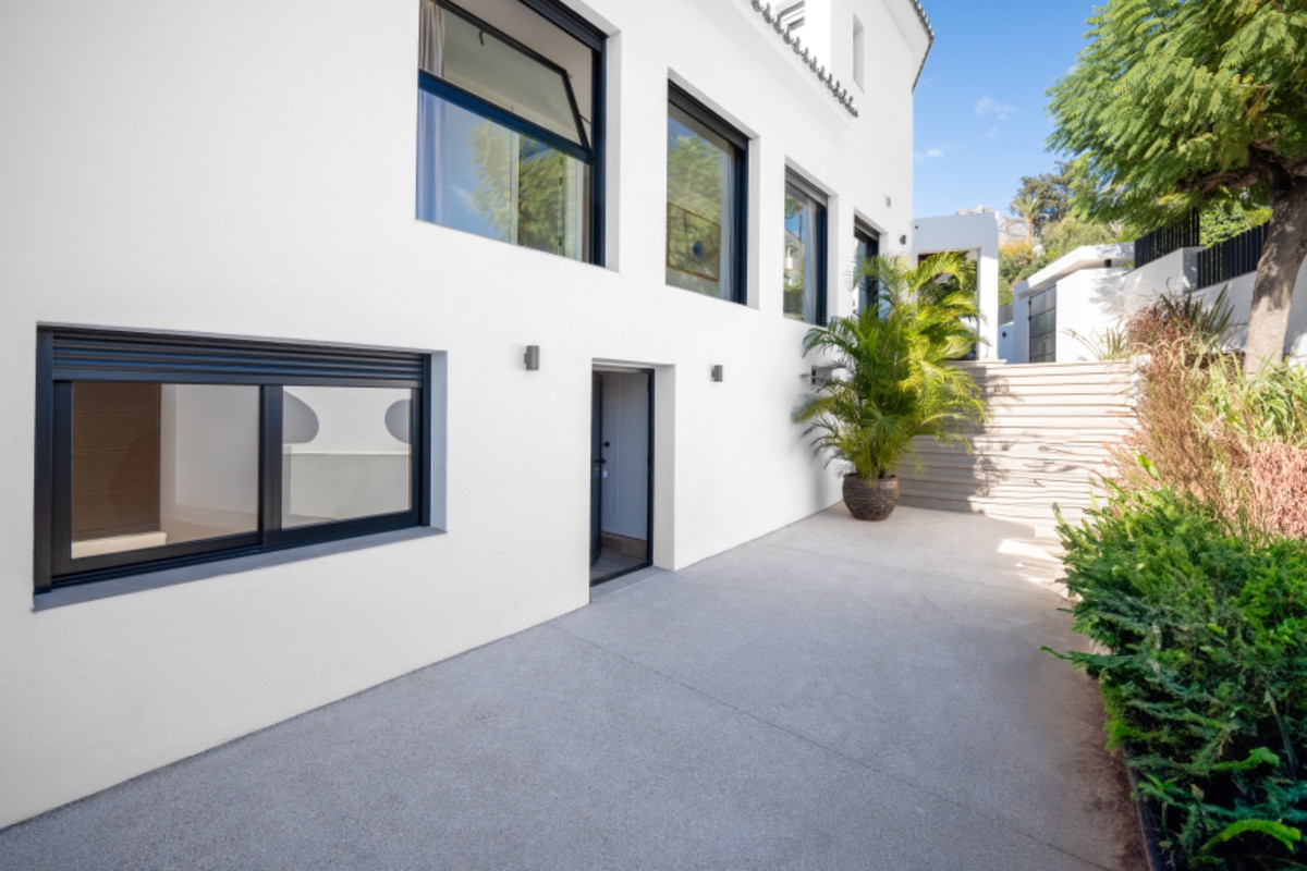 Villa Royale is a five-bedroom luxury home in the prestigious Nagüeles area. The property offers panoramic sea views, elegant open-plan living and a seamless flow between indoor and outdoor spaces. Every room opens to terraces and gardens that surround a heated pool, creating a calm and private retreat for modern living.