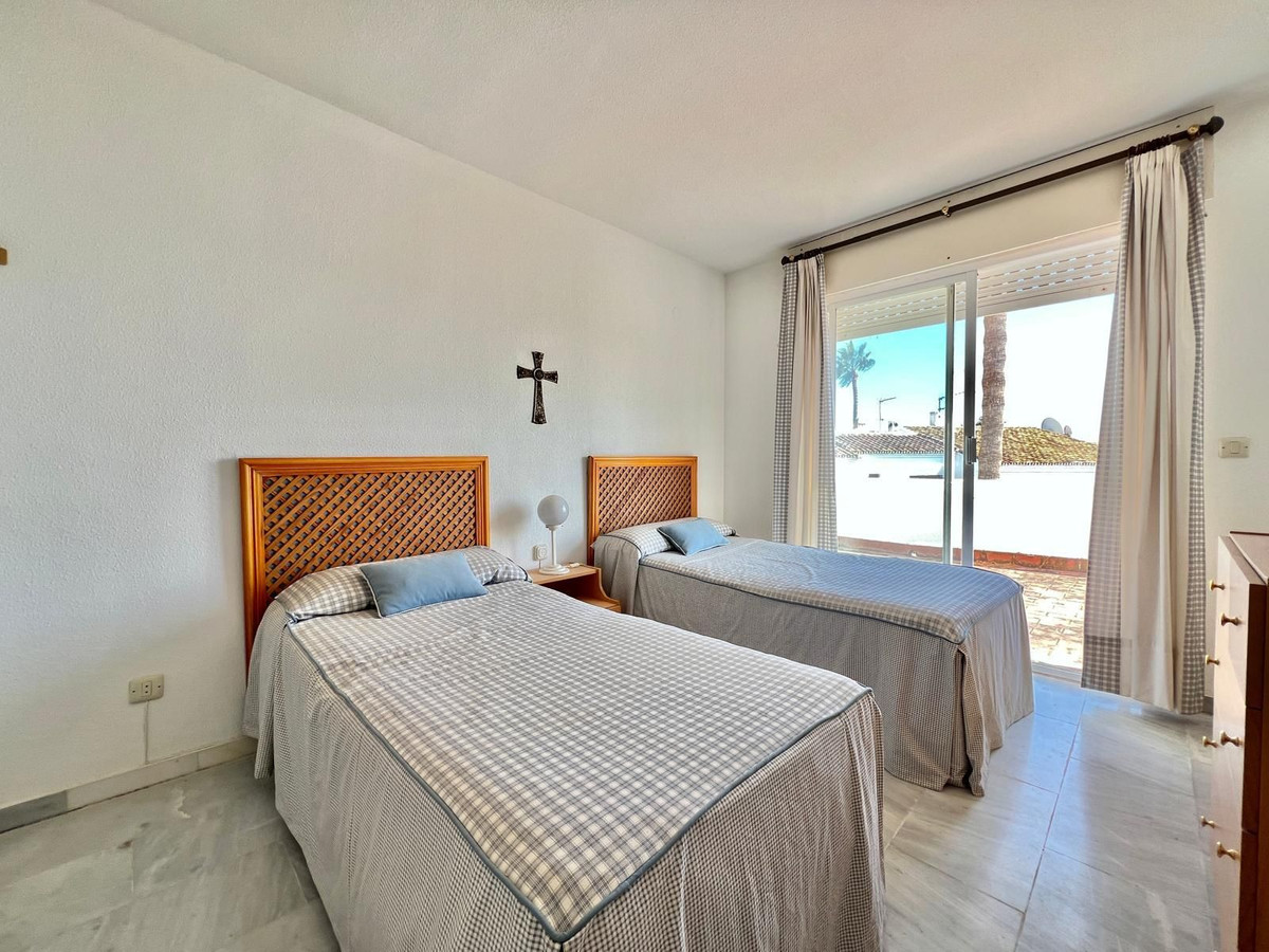 Upper floor: Master bedroom with en-suite bathroom and private terrace, plus two double bedrooms and a shared bathroom. Both double bedrooms open onto a large terrace with sea views.