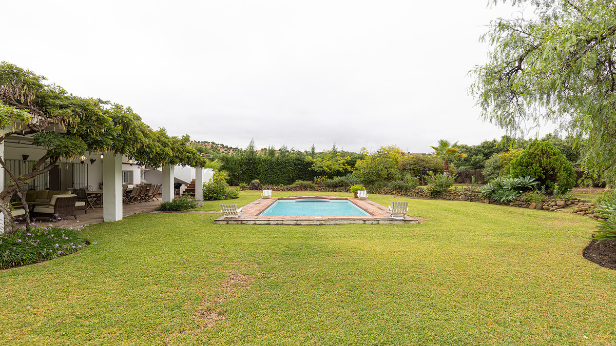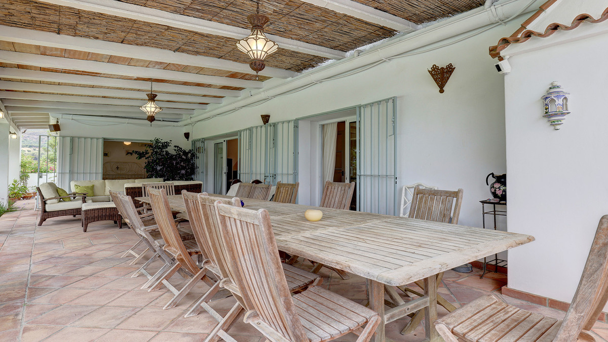 The covered terrace has a large dining area - ideal for al fresco dining and a comfortable relax area with sofas - sit back and enjoy the privacy and peacefulness of this setting. The terrace follows our to the private pool which is set within a beautiful lawn. The surrounding land is stunning filled with fruit trees such as lemon, grapefruit, orange, and avocado. A BBQ area adds to the outdoor entertainment options. Stairs from the covered terrace lead to a solarium terrace, providing an additional outdoor space for relaxing in the peaceful surroundings.