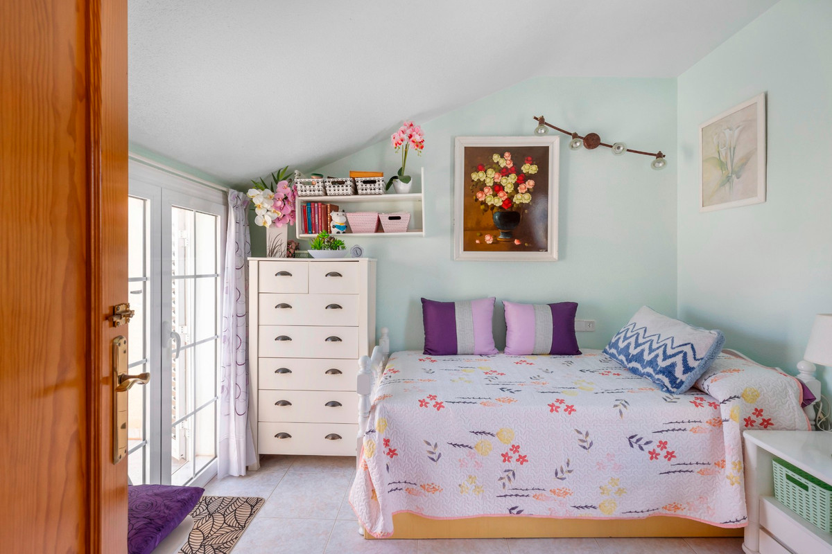 The top floor features another bedroom with access to two private solariums, perfect for relaxing or creating your own chill-out space.