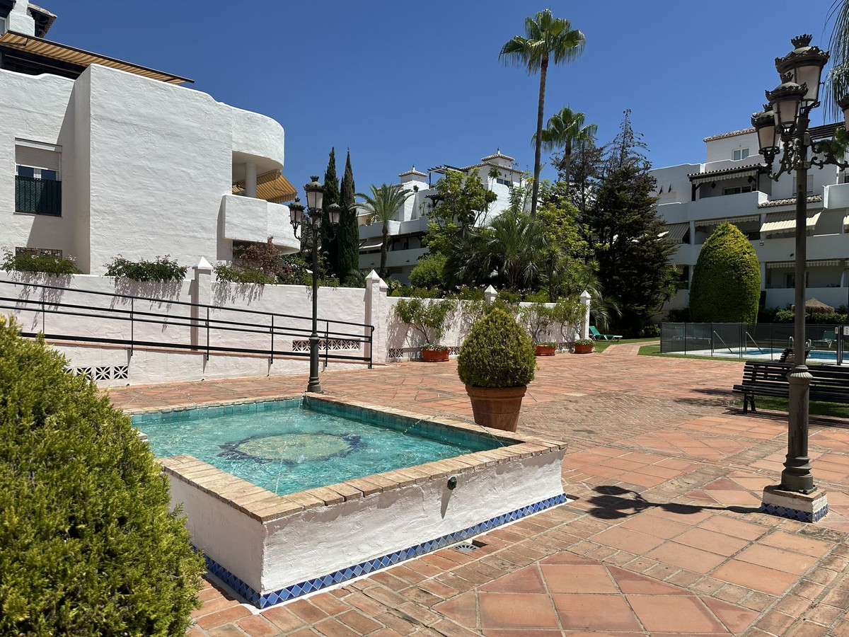 Within pretty landscaped gardens which include a lovely Andalusian-style water feature and large swimming pool.