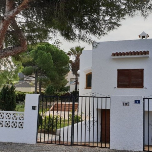 This villa is situated in an exclusive residential area and has its own private pool and a plot of 410m2. The property has 250m2 built area divided into 4 floors. On the ground floor there is a spacious living room with open plan kitchen, 1 bedroom, 1 bathroom and terrace with access to the pool. On the semi-basement floor there is a living room with open plan kitchen, 2 bedrooms and 1 bathroom. This floor also has a sauna and shower. On the first floor there are 2 bedrooms, each with en-suite bathroom and a large terrace. On the top floor there is a large solarium of 46m2.