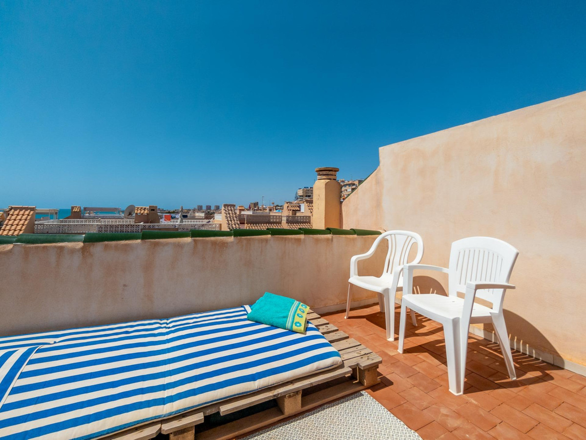I present this townhouse with sea views! It's located in Cabo Cervera, Torrevieja. It's just 30 meters from the sea. Torrevieja is a coastal city on the Costa Blanca. It's a tourist area, known for its multitude of beaches and sunny climate.
