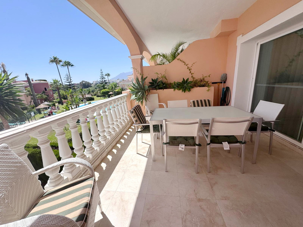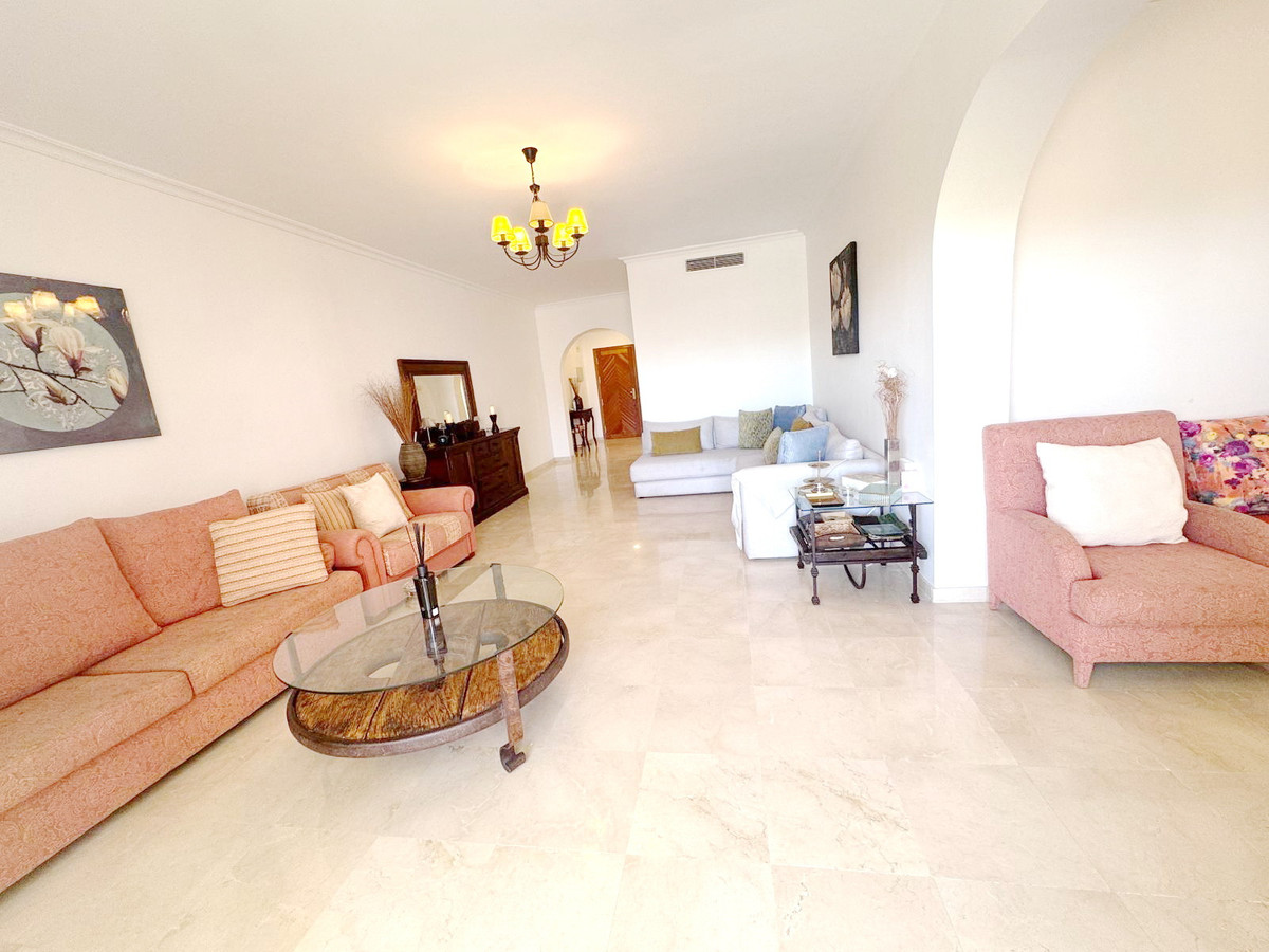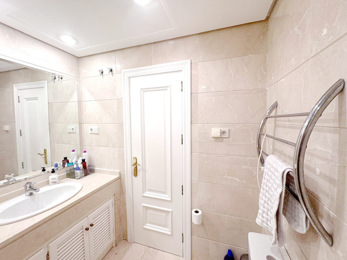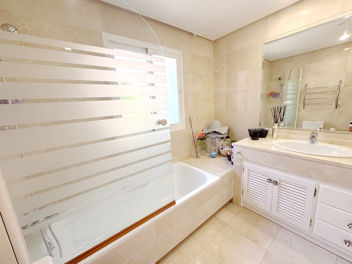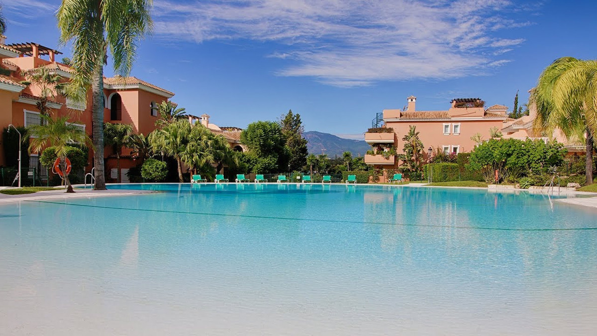 Spectacular south facing, very spacious and bright apartment in the Guadalmansa beach area of Estepona's New Golden Mile. Located in the beautiful private development of Park Beach, just 50 meters from the beach, a very quiet complex with two communal pools and night security.
