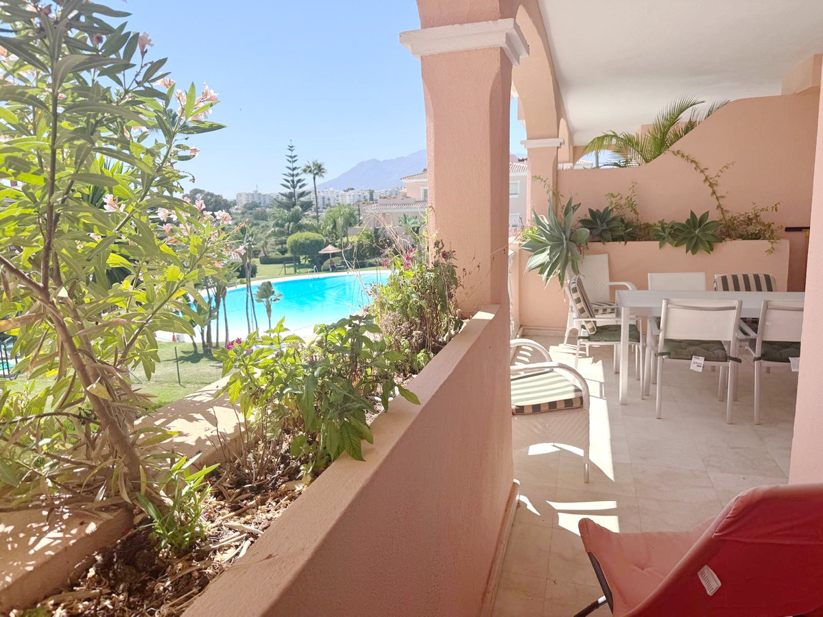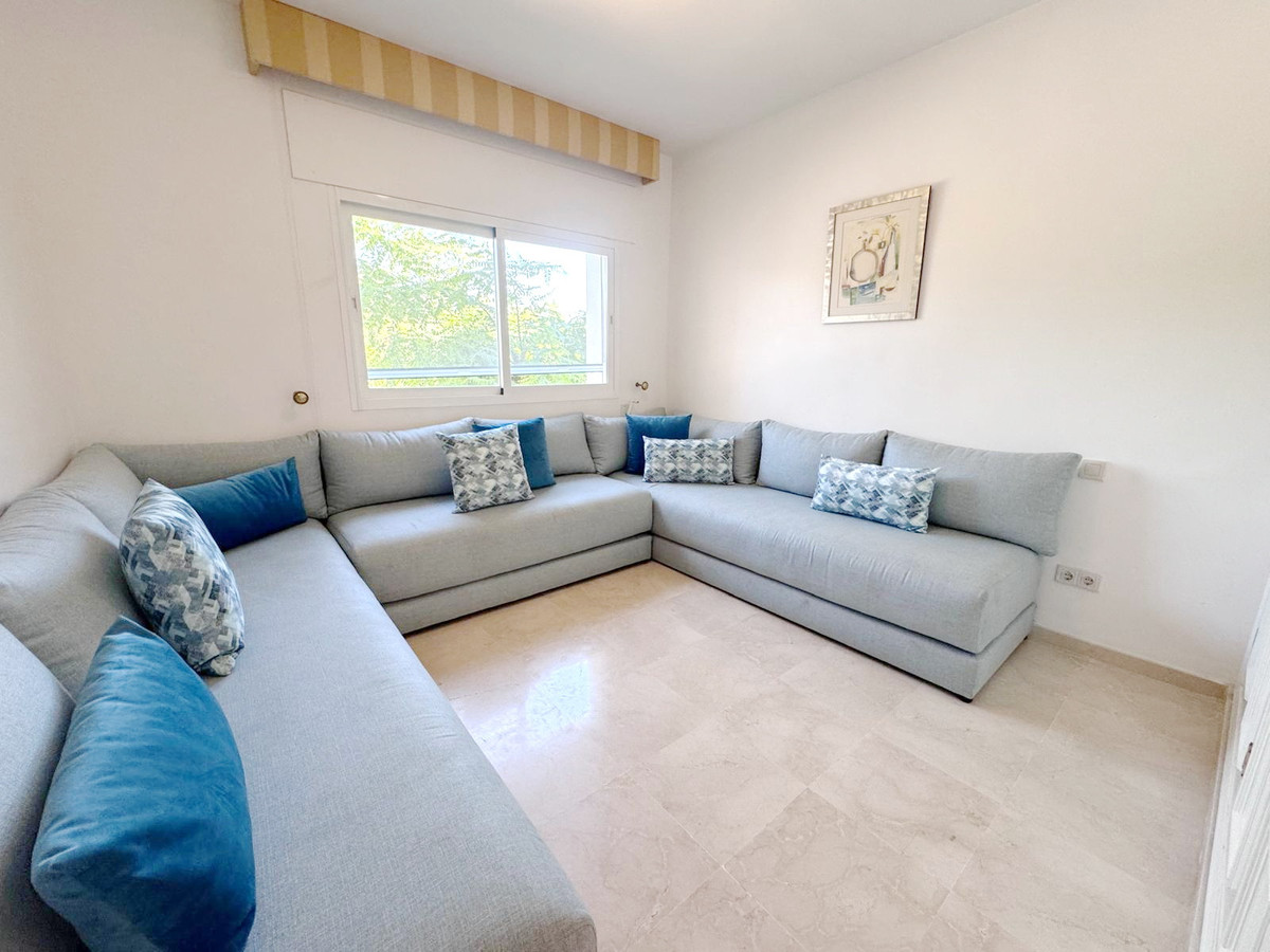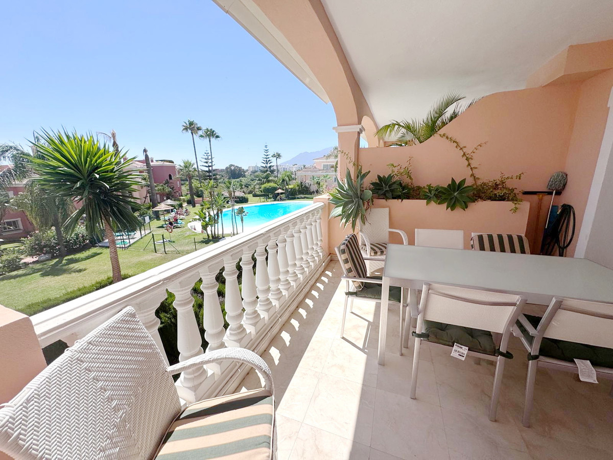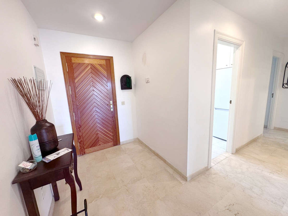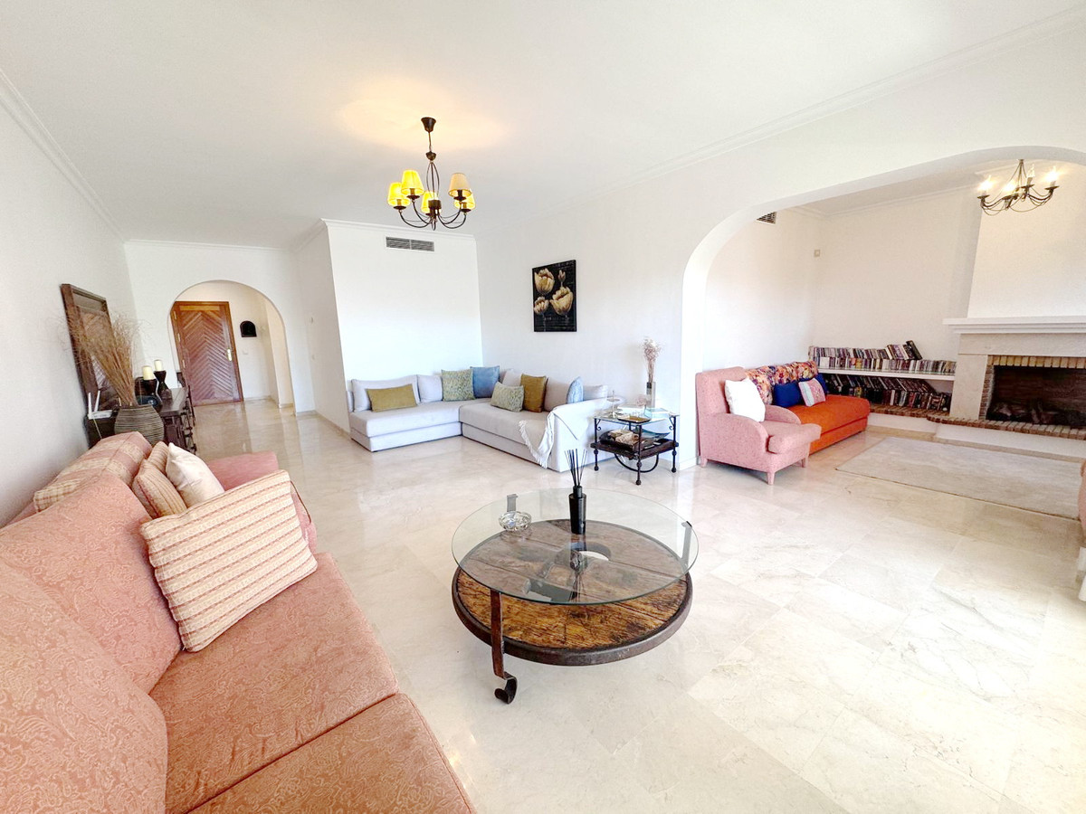 Spectacular south facing, very spacious and bright apartment in the Guadalmansa beach area of Estepona's New Golden Mile. Located in the beautiful private development of Park Beach, just 50 meters from the beach, a very quiet complex with two communal pools and night security.