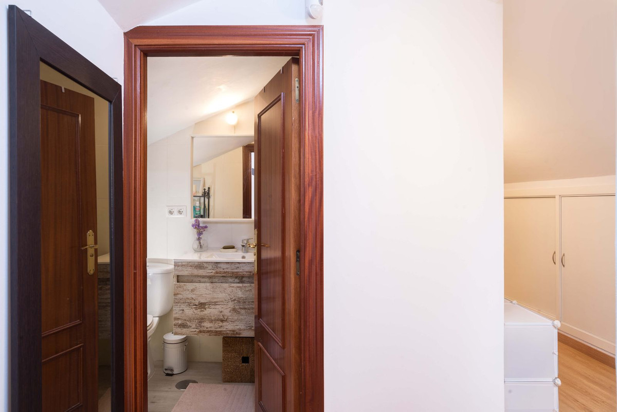 The upper floor has two bedrooms, a second full bathroom, a practical dressing room and a built-in wardrobe along the entire length of the hallway, perfect for keeping things tidy and providing ample storage space.