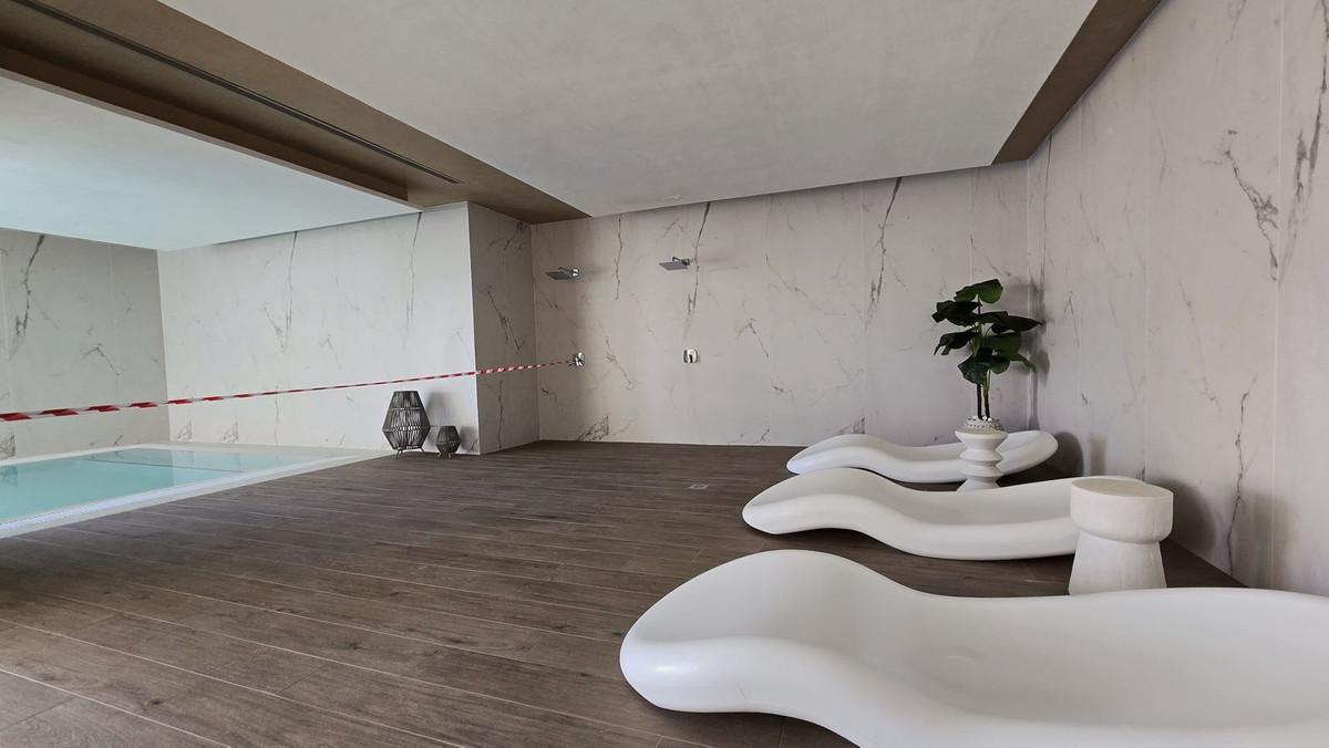 All bedrooms include fully equipped built-in wardrobes, as well as electric blinds for added comfort. The master bedroom also opens onto a private terrace enclosed by glass curtains.