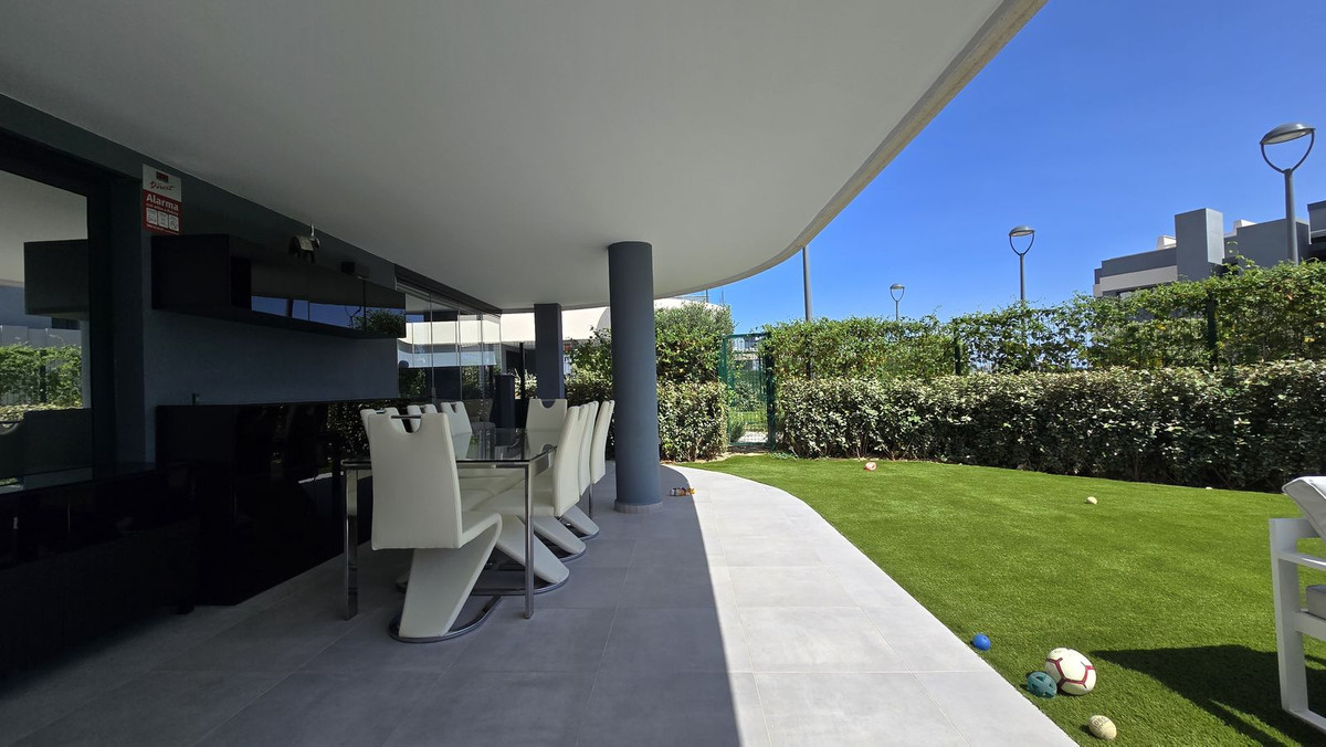 Between Estepona and Puerto Banus Modern 3 bedroom 2 bathroom corner ground floor apartment with wonderful garden and swimming pool views