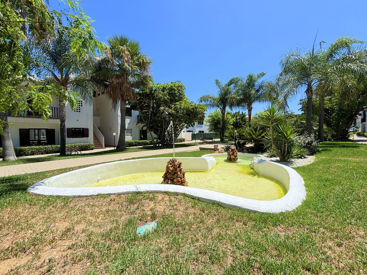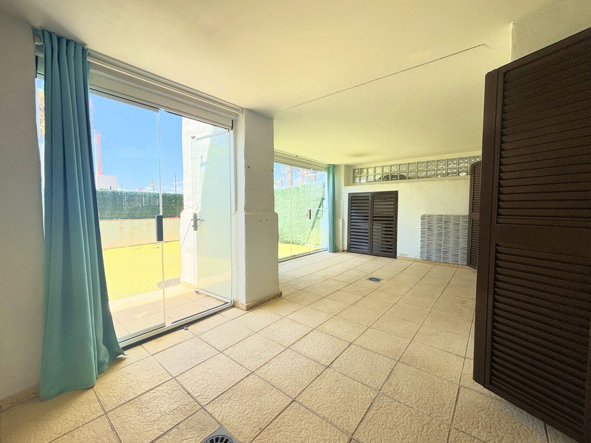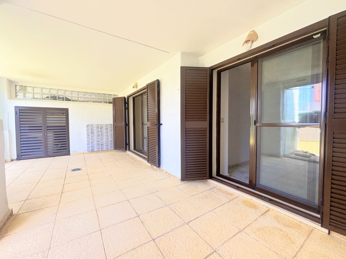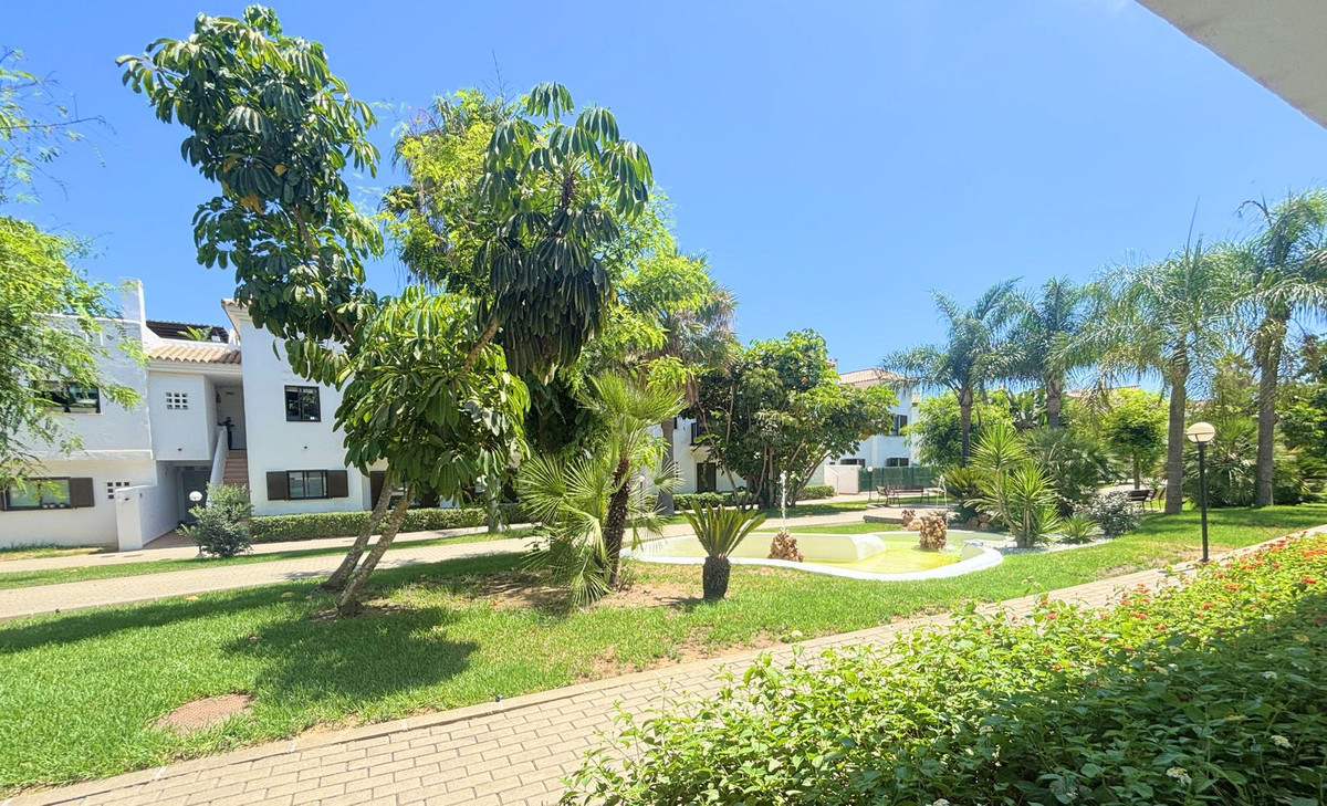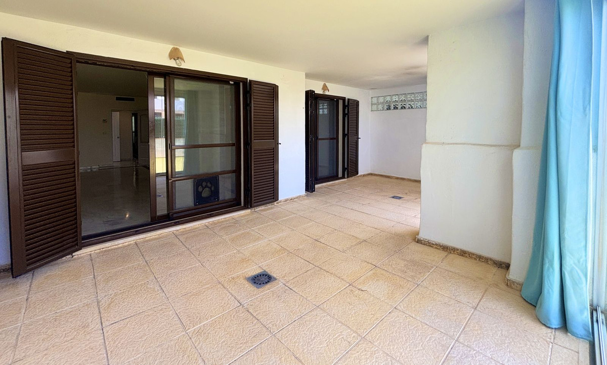 CHARMING GROUND FLOOR HOME WITH PRIVATE GARDEN IN FRONTLINE GOLF URBANIZATION IN LA ALCAIDESA.Ideally located in La Alcaidesa, within an exclusive gated community situated on the frontline of the renowned Alcaidesa Links Golf Course, this bright and comfortable two-bedroom, two-bathroom property (one en suite) is perfect as a permanent residence, holiday home, or investment. The layout includes a kitchen, a spacious living room with direct access to a covered terrace enclosed with Lumon glass — ideal for year-round use — and a lovely private garden that offers both privacy and a peaceful atmosphere. Additional features include mosquito screens on all windows, a private parking space, and a storage room included in the price. The community offers beautifully landscaped gardens with decorative fountains that create a refreshing ambiance, along with a large communal swimming pool. A fantastic opportunity in a growing area with excellent rental potential.