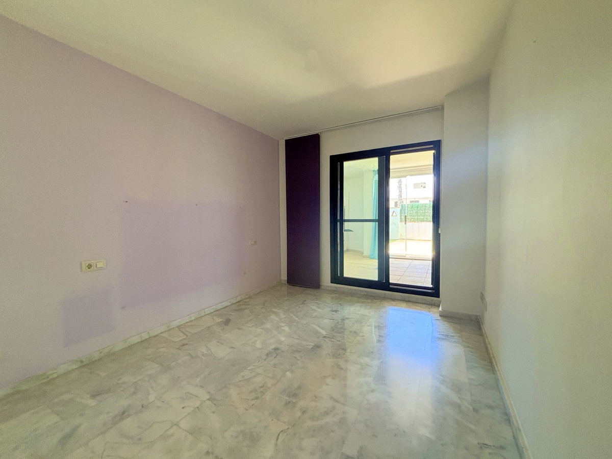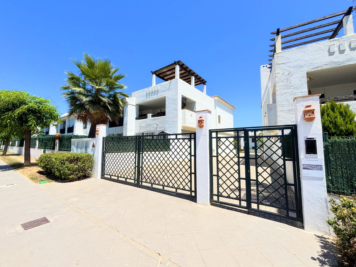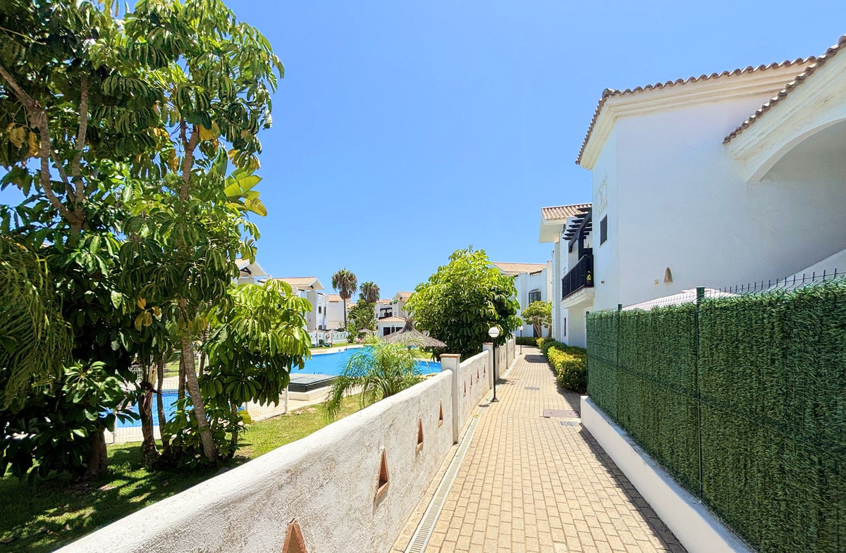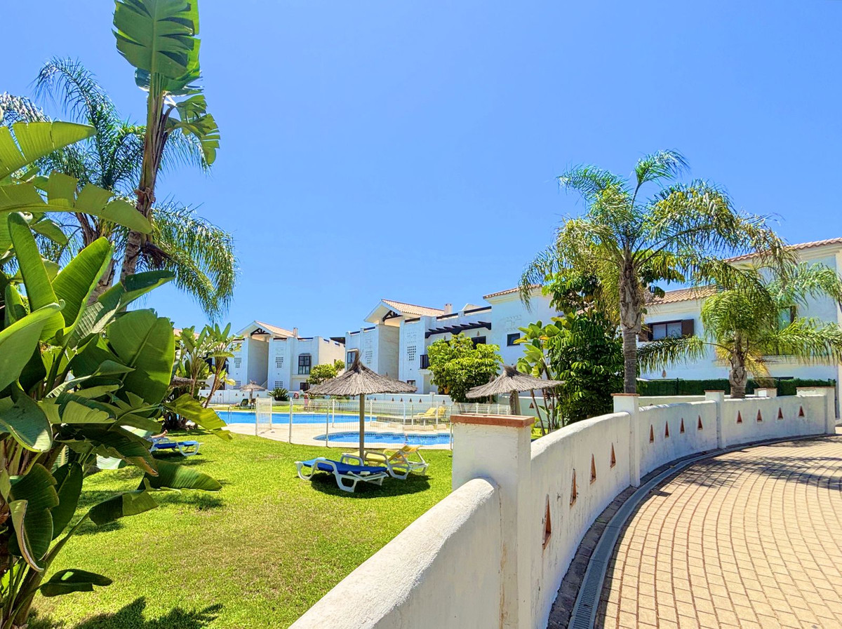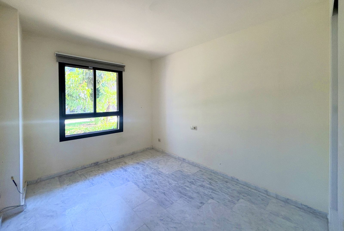 CHARMING GROUND FLOOR HOME WITH PRIVATE GARDEN IN FRONTLINE GOLF URBANIZATION IN LA ALCAIDESA.Ideally located in La Alcaidesa, within an exclusive gated community situated on the frontline of the renowned Alcaidesa Links Golf Course, this bright and comfortable two-bedroom, two-bathroom property (one en suite) is perfect as a permanent residence, holiday home, or investment. The layout includes a kitchen, a spacious living room with direct access to a covered terrace enclosed with Lumon glass — ideal for year-round use — and a lovely private garden that offers both privacy and a peaceful atmosphere. Additional features include mosquito screens on all windows, a private parking space, and a storage room included in the price. The community offers beautifully landscaped gardens with decorative fountains that create a refreshing ambiance, along with a large communal swimming pool. A fantastic opportunity in a growing area with excellent rental potential.