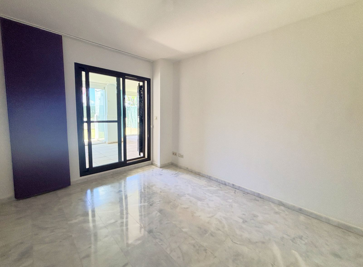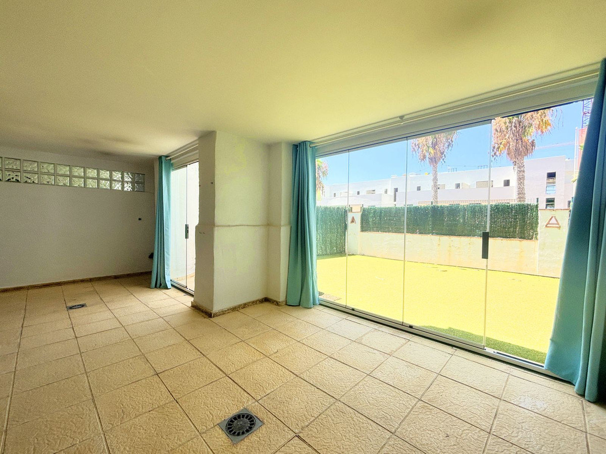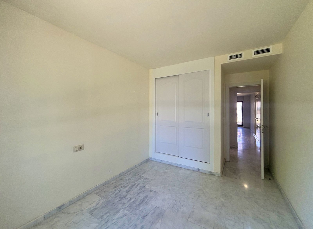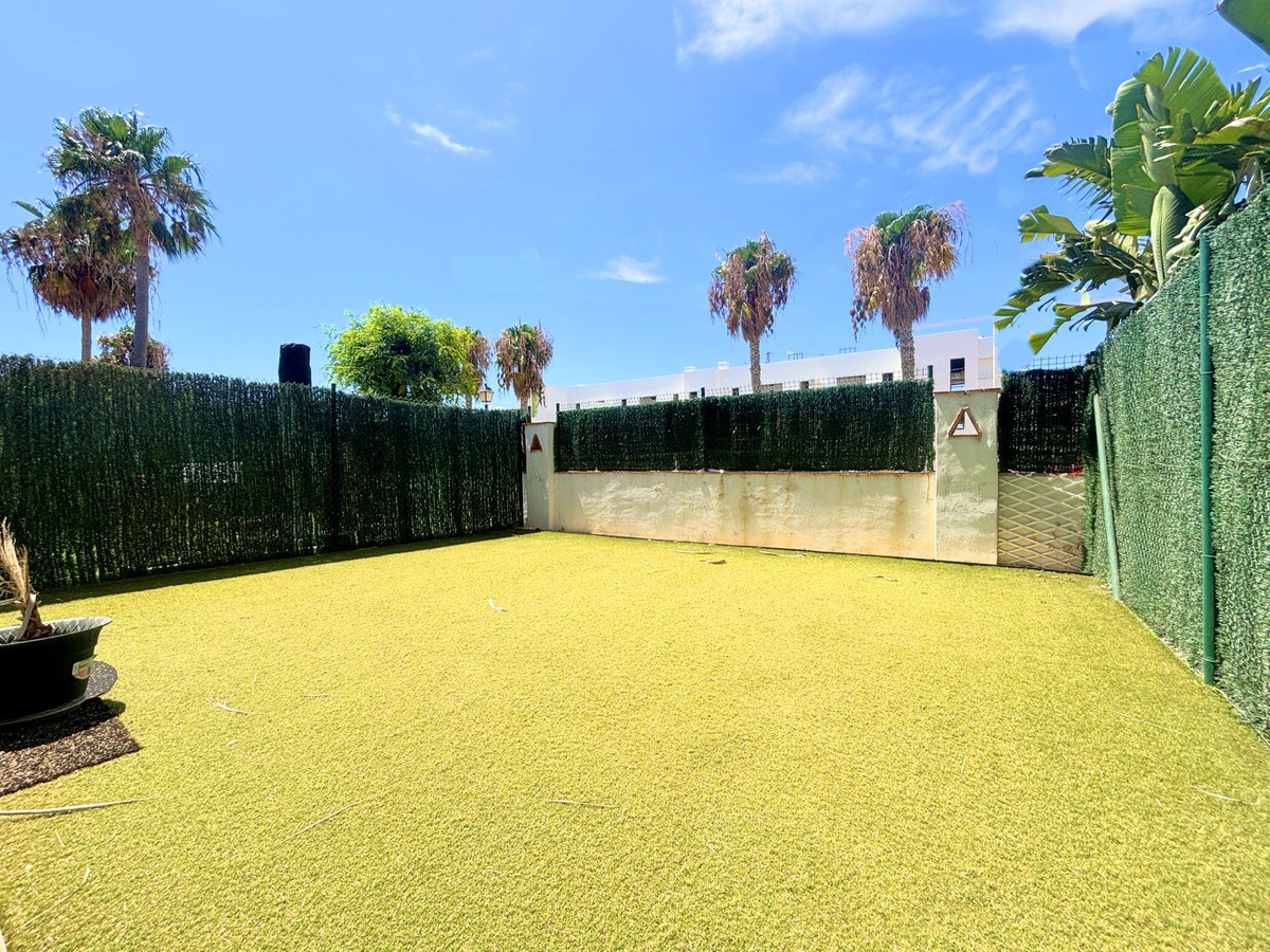 CHARMING GROUND FLOOR HOME WITH PRIVATE GARDEN IN FRONTLINE GOLF URBANIZATION IN LA ALCAIDESA.Ideally located in La Alcaidesa, within an exclusive gated community situated on the frontline of the renowned Alcaidesa Links Golf Course, this bright and comfortable two-bedroom, two-bathroom property (one en suite) is perfect as a permanent residence, holiday home, or investment. The layout includes a kitchen, a spacious living room with direct access to a covered terrace enclosed with Lumon glass — ideal for year-round use — and a lovely private garden that offers both privacy and a peaceful atmosphere. Additional features include mosquito screens on all windows, a private parking space, and a storage room included in the price. The community offers beautifully landscaped gardens with decorative fountains that create a refreshing ambiance, along with a large communal swimming pool. A fantastic opportunity in a growing area with excellent rental potential.