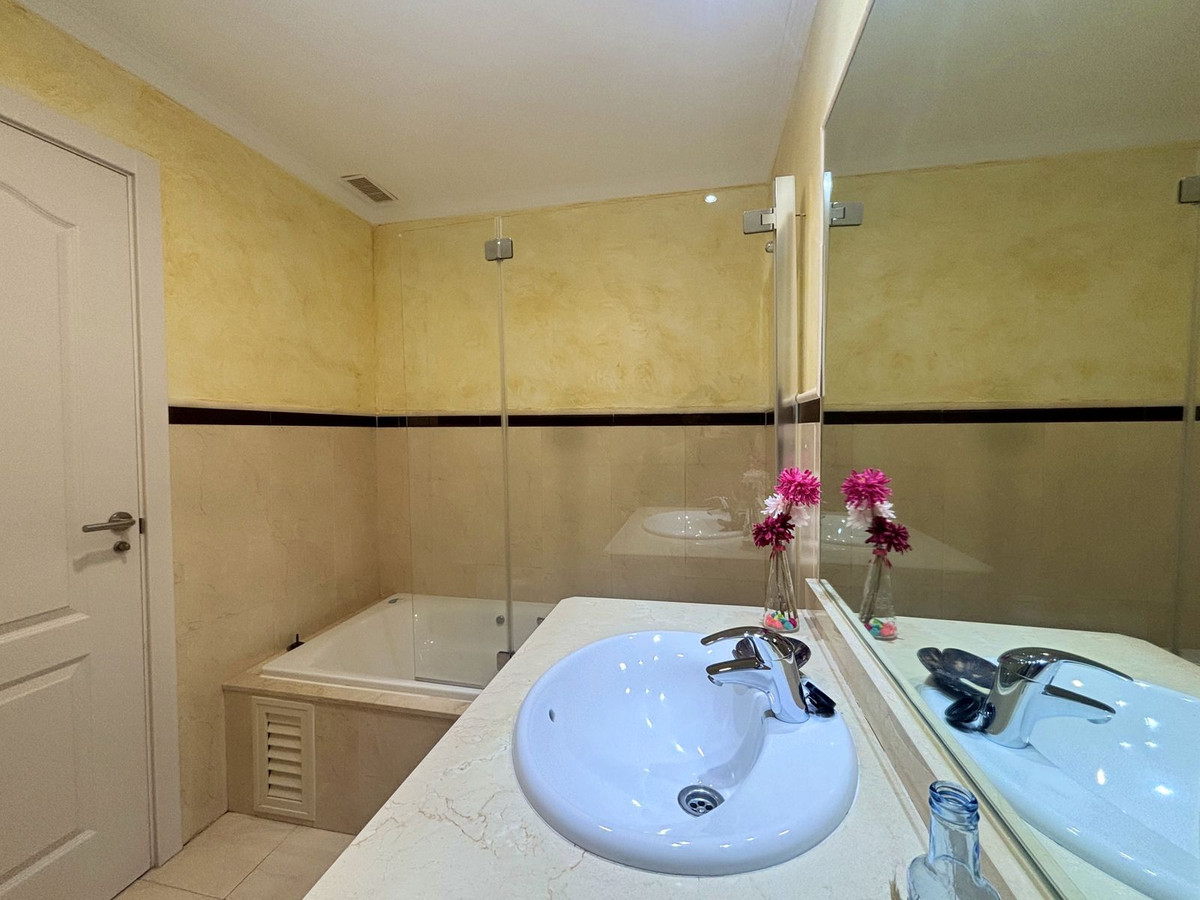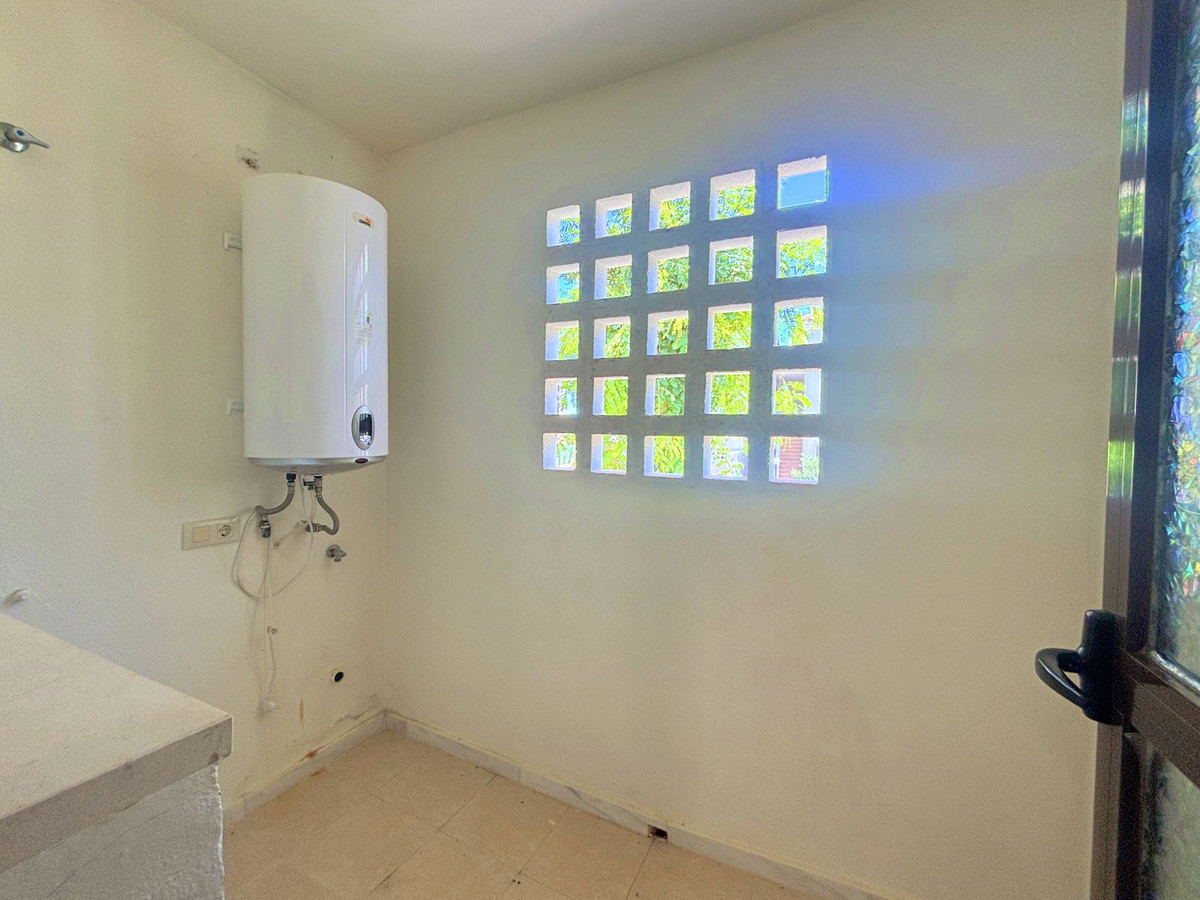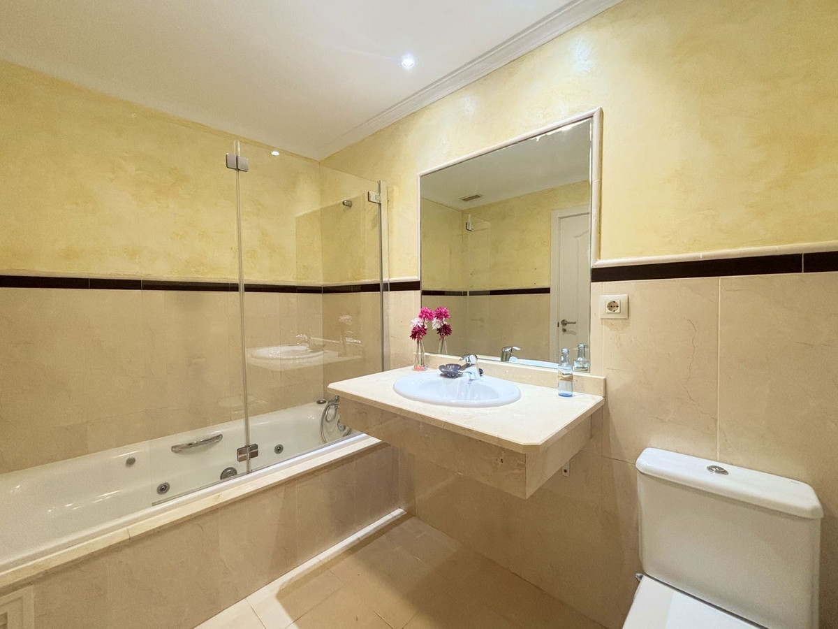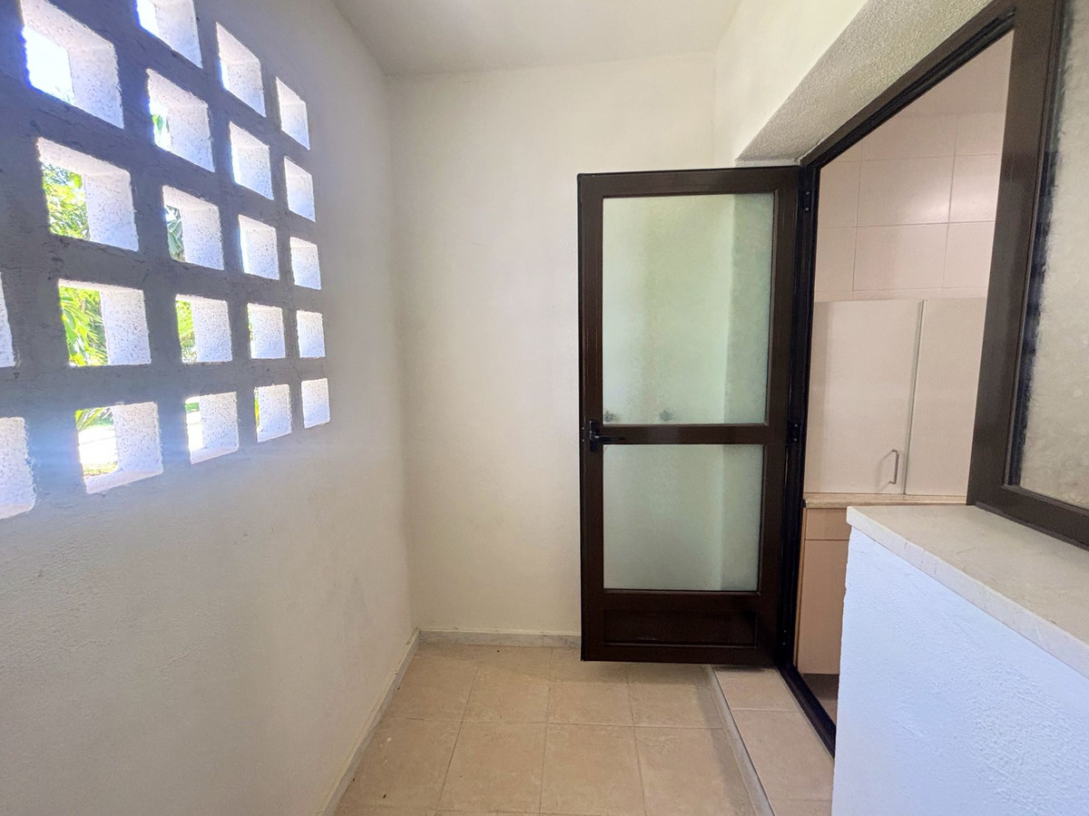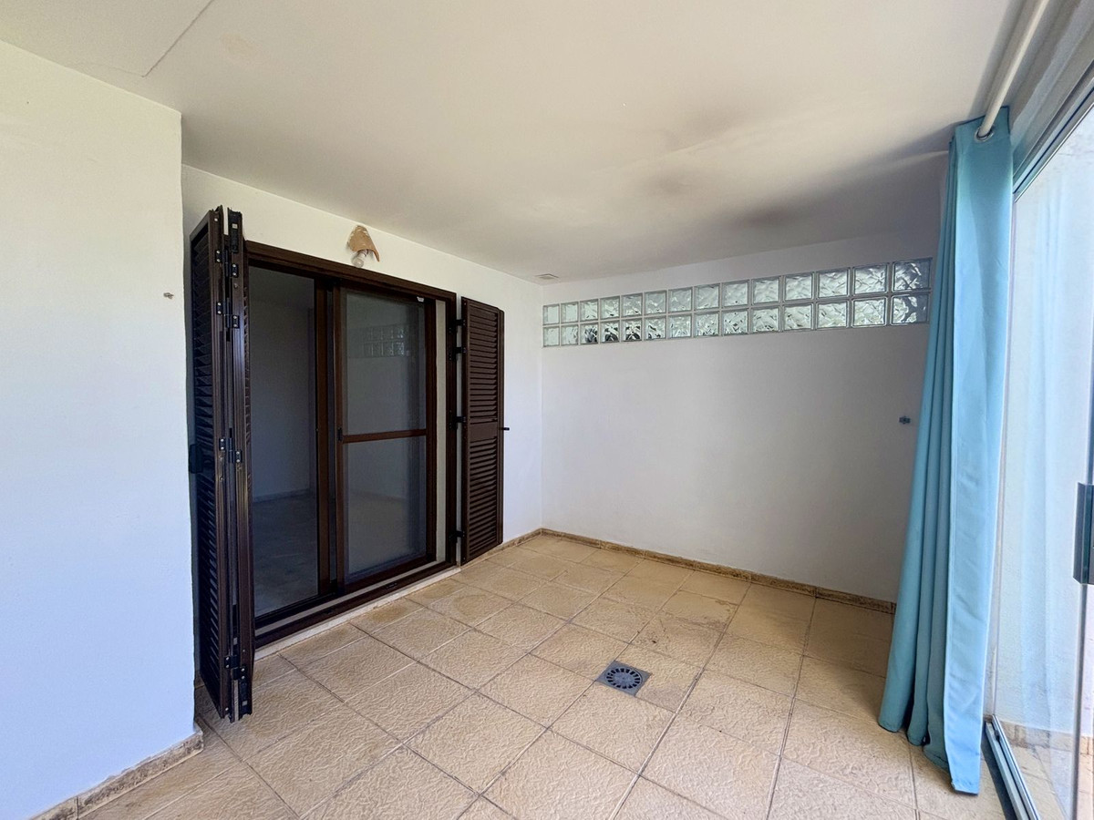 CHARMING GROUND FLOOR HOME WITH PRIVATE GARDEN IN FRONTLINE GOLF URBANIZATION IN LA ALCAIDESA.Ideally located in La Alcaidesa, within an exclusive gated community situated on the frontline of the renowned Alcaidesa Links Golf Course, this bright and comfortable two-bedroom, two-bathroom property (one en suite) is perfect as a permanent residence, holiday home, or investment. The layout includes a kitchen, a spacious living room with direct access to a covered terrace enclosed with Lumon glass — ideal for year-round use — and a lovely private garden that offers both privacy and a peaceful atmosphere. Additional features include mosquito screens on all windows, a private parking space, and a storage room included in the price. The community offers beautifully landscaped gardens with decorative fountains that create a refreshing ambiance, along with a large communal swimming pool. A fantastic opportunity in a growing area with excellent rental potential.