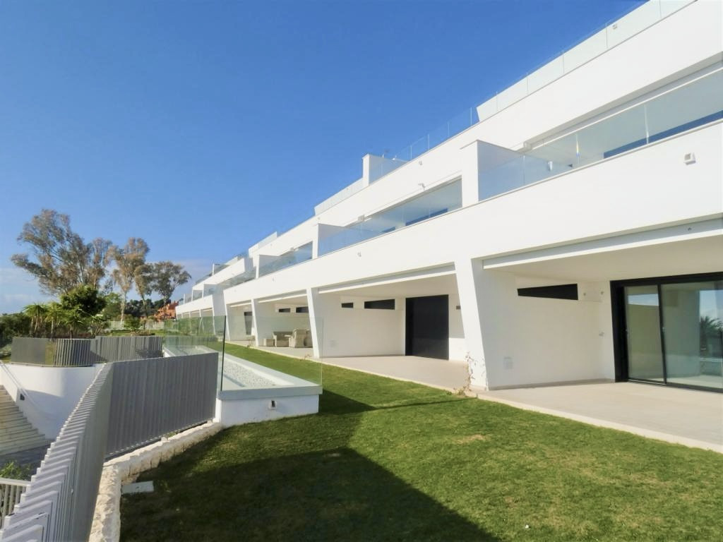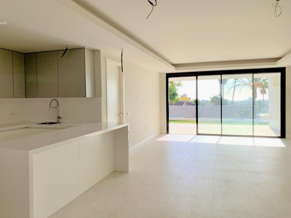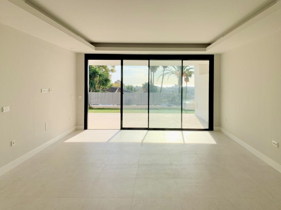 Charming ground floor apartment with garden in the Azahar de Marbella complex, boasting panoramic views of the Mediterranean Sea and golf fairways. In pristine condition, this corner unit offers extra privacy and a larger garden area. The 3-bedroom, 2-bathroom apartment is built to high standards, featuring a stylish, modern design with top-quality materials. It includes a living-dining area, an open-plan kitchen, spacious bedrooms, modern bathrooms, and a large terrace with direct garden access. The apartment benefits from abundant natural light through panoramic windows. Additional amenities include a large storage room and underground parking.