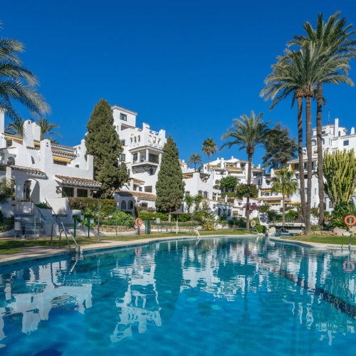 Azahar de Marbella is a contemporary development in Nueva Andalucía, offering 42 high-quality apartments and penthouses. Residents enjoy facilities like a pool, spa, sauna, Turkish bath, jacuzzi, gym, and communal gardens. Located in the prestigious Golf Valley, it's close to several golf courses and a short drive from Nueva Andalucía and Puerto Banús amenities. Ideal for those seeking a modern, peaceful home.