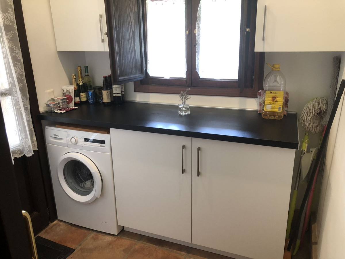 Distributed in salon with open plan modern kitchen with separate laundry room and storage room. Leading out to a large and south facing covered terrace overlooking the well maintained garden with swimming pool with solar working outdoor shower.