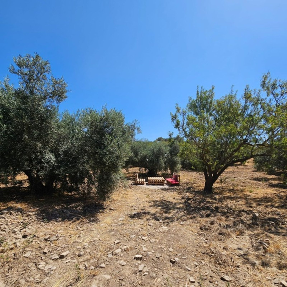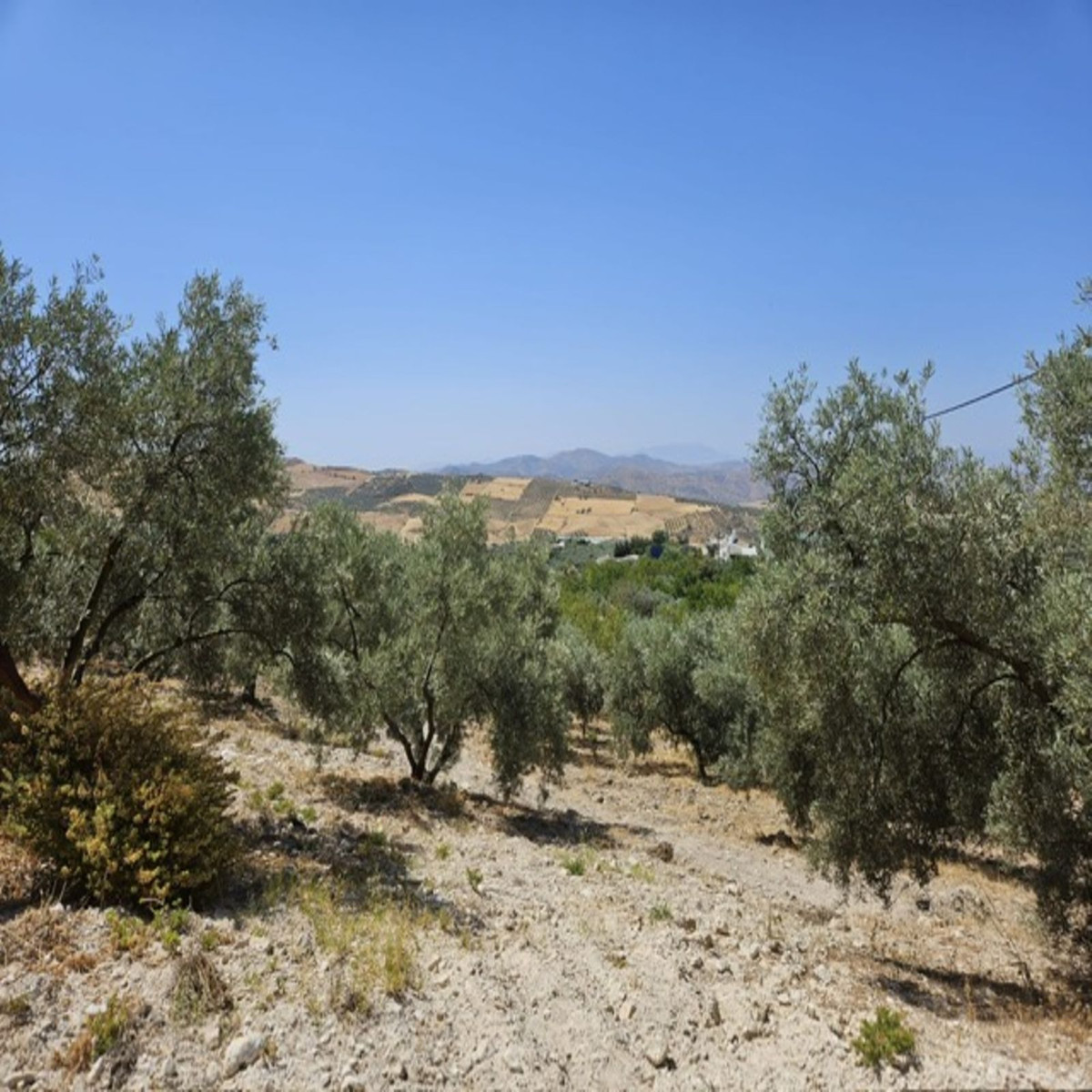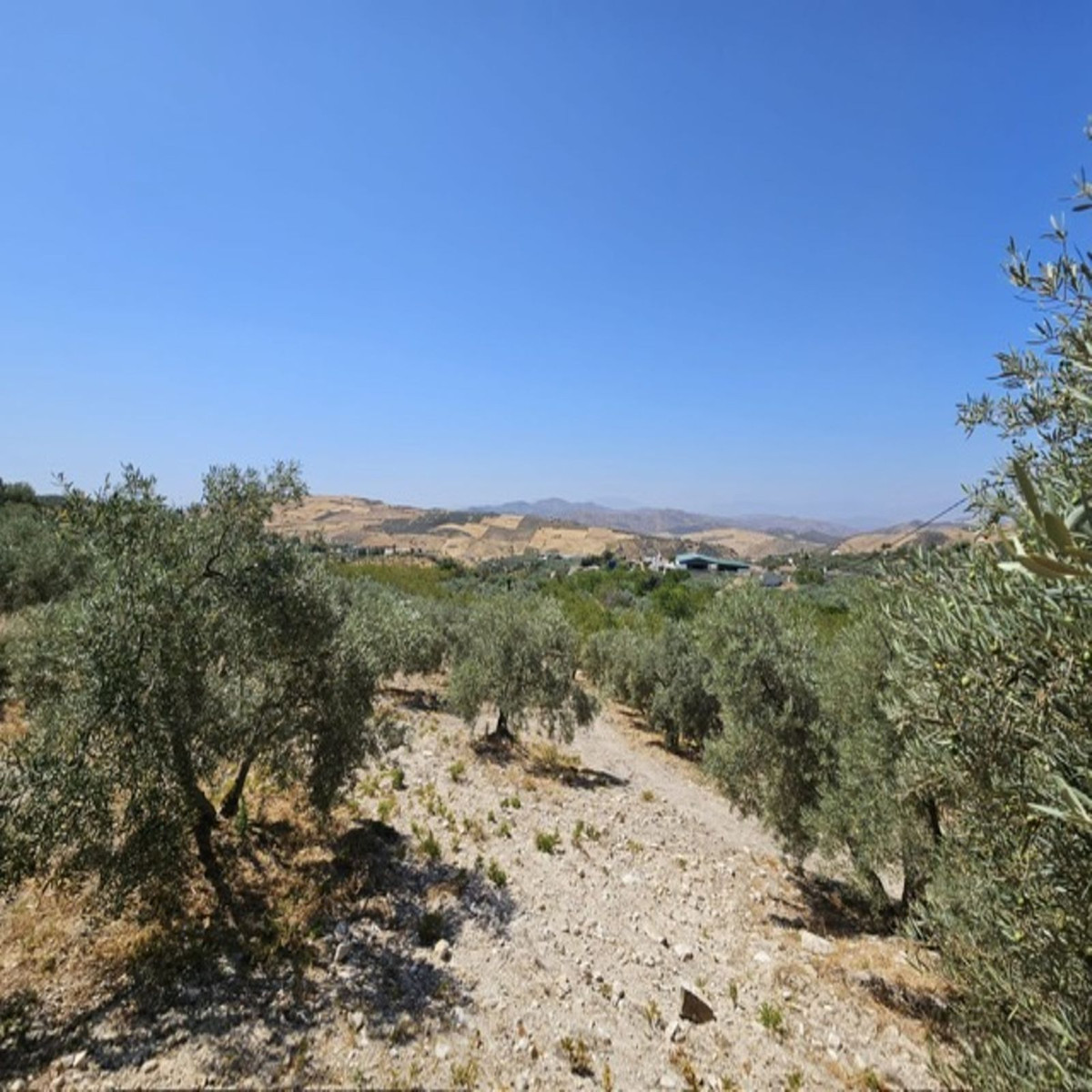 Then walk 20 meters and you will find a fenced plot. The land is almost entirely flat and has a space prepared for caravan parking. There is a shower and a toilet on the same plot for new owners who want to take advantage of an extra income. The plot measures no less than 18,000 m2 and has 80 Hojiblanca olive trees actively producing extra virgin olive oil.