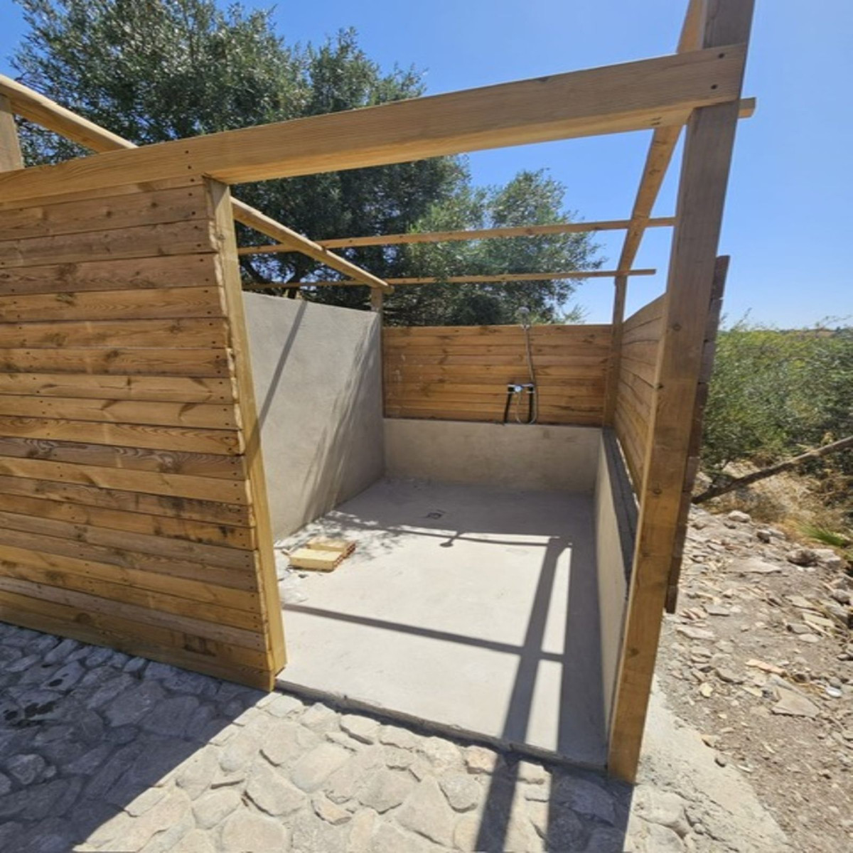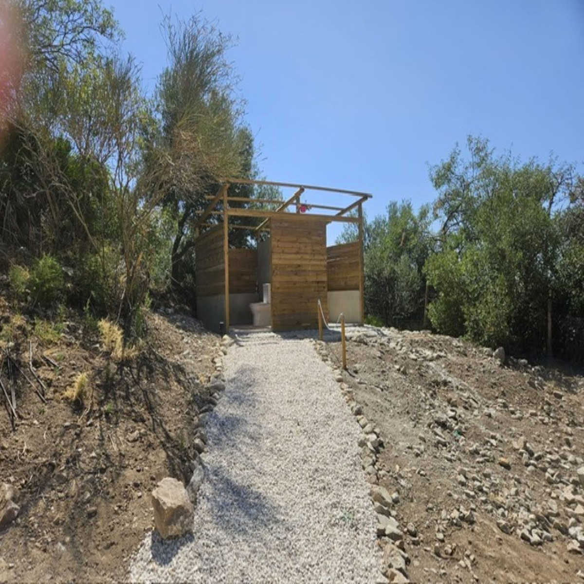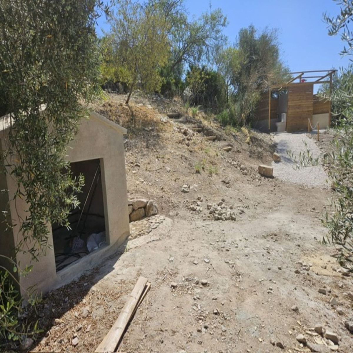 Then walk 20 meters and you will find a fenced plot. The land is almost entirely flat and has a space prepared for caravan parking. There is a shower and a toilet on the same plot for new owners who want to take advantage of an extra income. The plot measures no less than 18,000 m2 and has 80 Hojiblanca olive trees actively producing extra virgin olive oil.