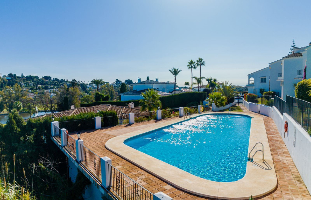 The impressive residents swimming pool offering stunning Golf green and La Concha mountain views is open all year round 24/7.