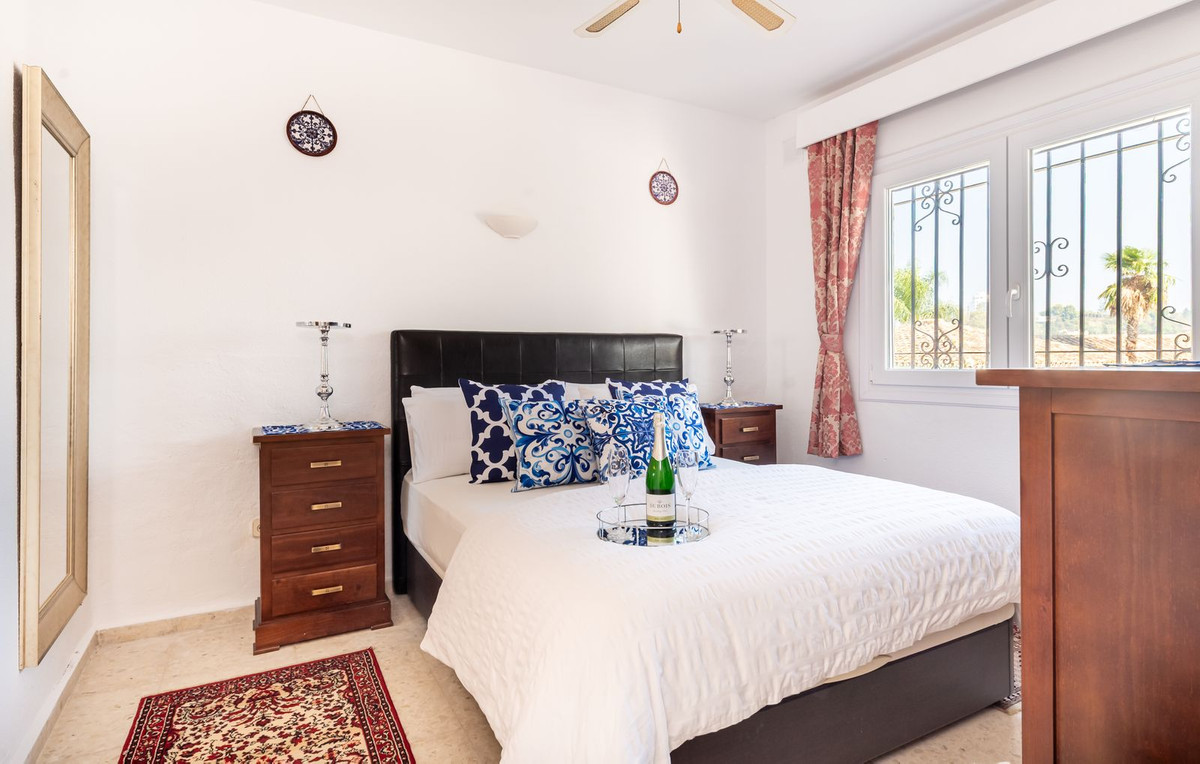 The Master bedroom ensuite is complimented with Mahogany wood furniture with LG TV and offers views to the beautiful Andalucian envirnoment, the ensuite bathroom is equipped with a spacious walk in shower.