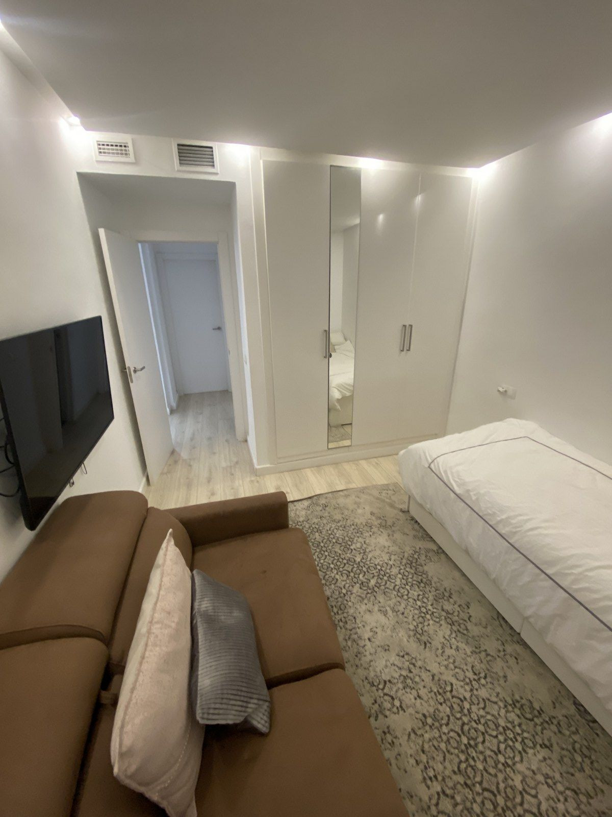 The property offers two generous bedrooms plus a versatile smaller room, perfect for use as a guest room, office, or walk-in wardrobe.