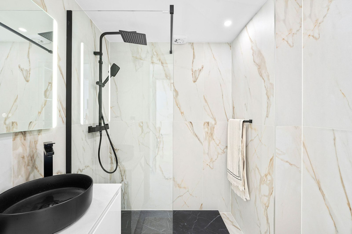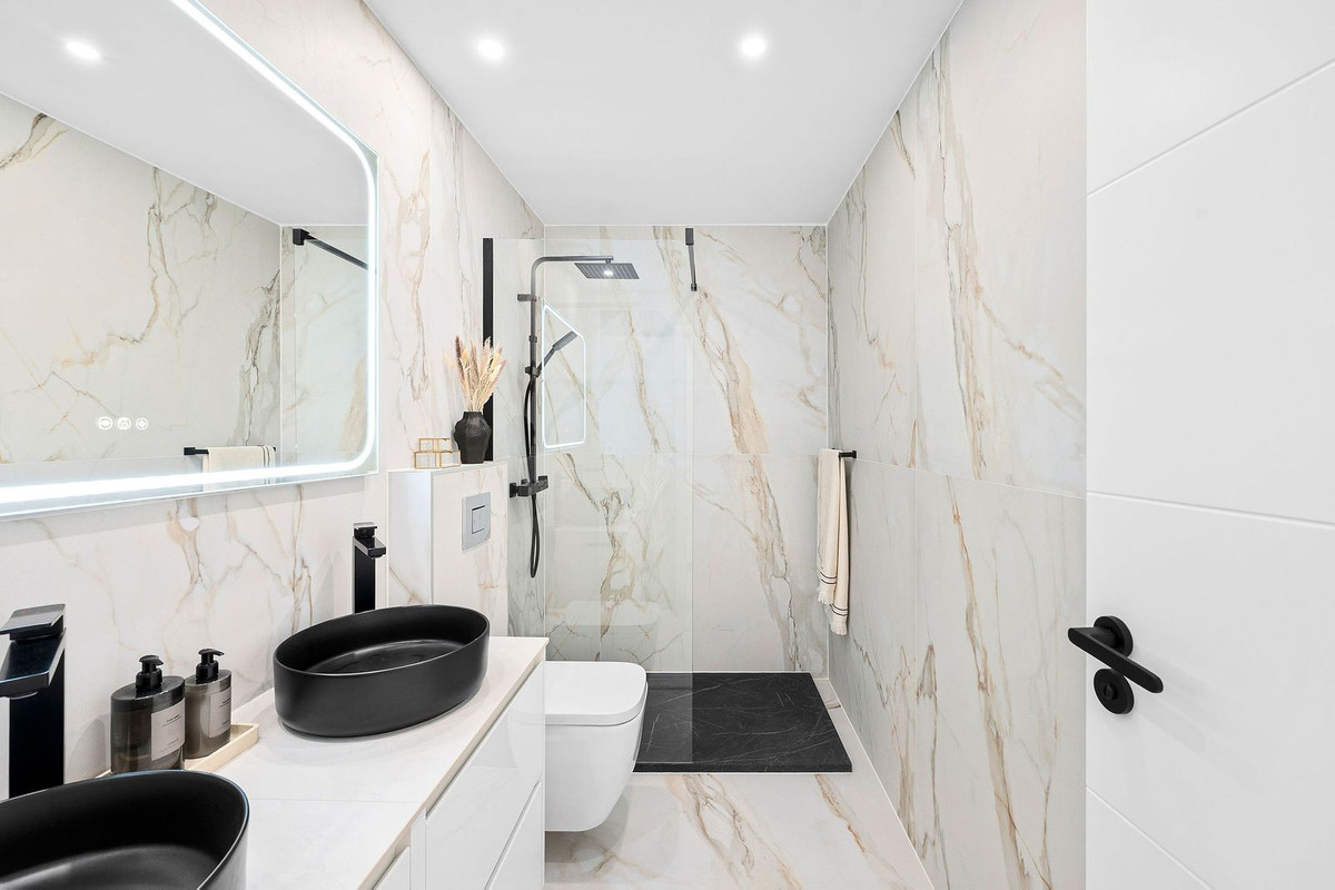 The apartment features 3 bedrooms and 3 modern bathrooms, 2 of them en-suite. A spacious living and dining area with an inviting, airy feel, fully equipped kitchen and an amazing private terrace surrounded by lush greenery, offering ample space for relaxing, dining, and entertaining.