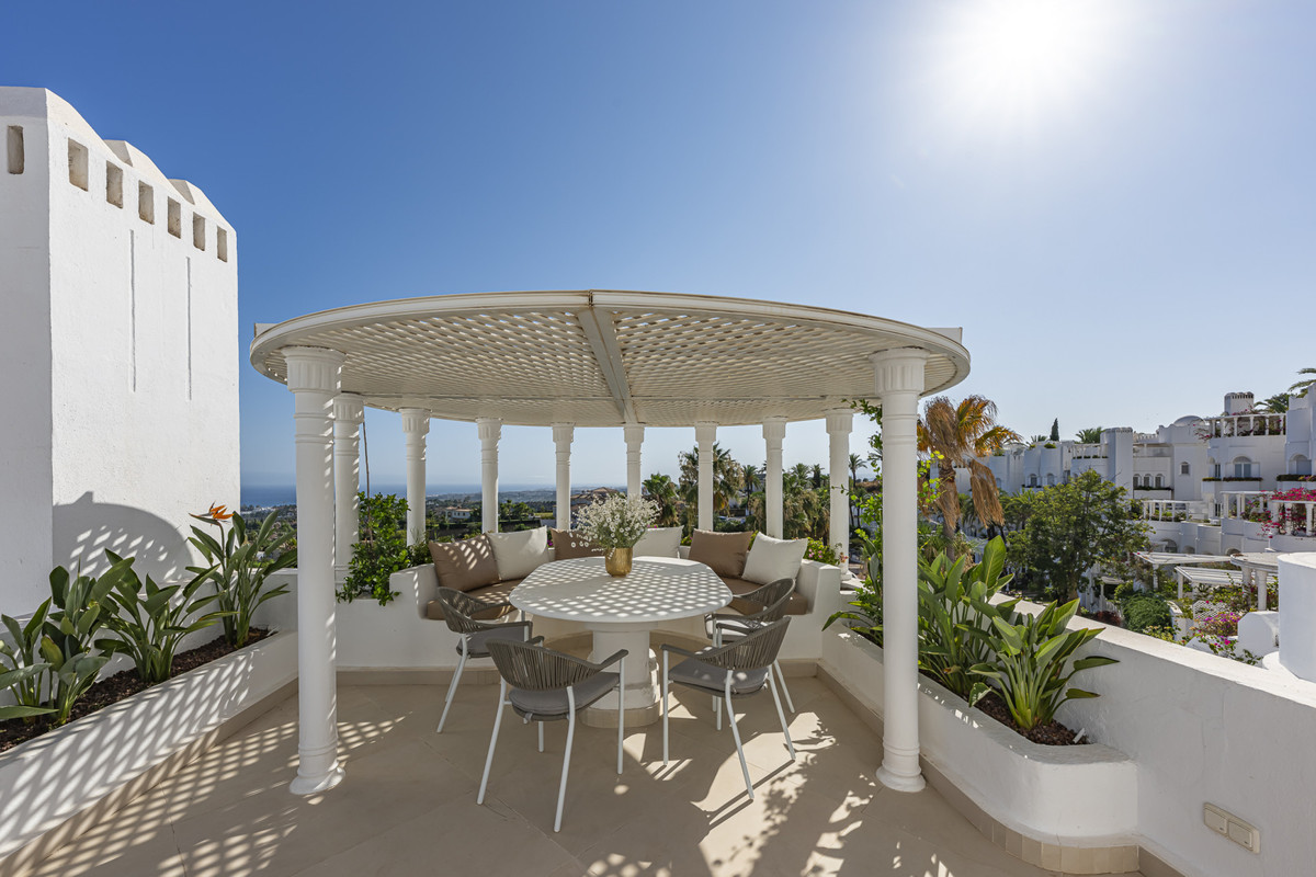 The location is particularly advantageous, being mountainside yet close to town, renowned schools, and a diverse selection of restaurants. Residents enjoy easy access to local amenities and transport links, making this apartment an ideal choice for those seeking a luxurious lifestyle in Marbella's iconic Golden Mile. With breathtaking sea, mountain, and pool views from the covered and private terraces, this property epitomises refined coastal living.
