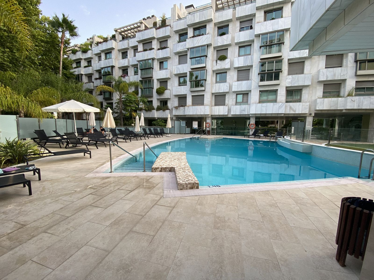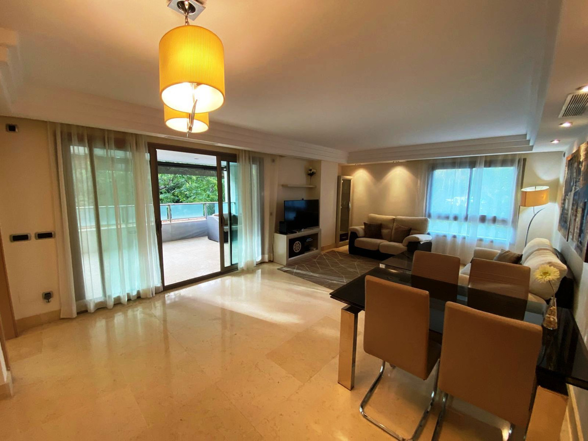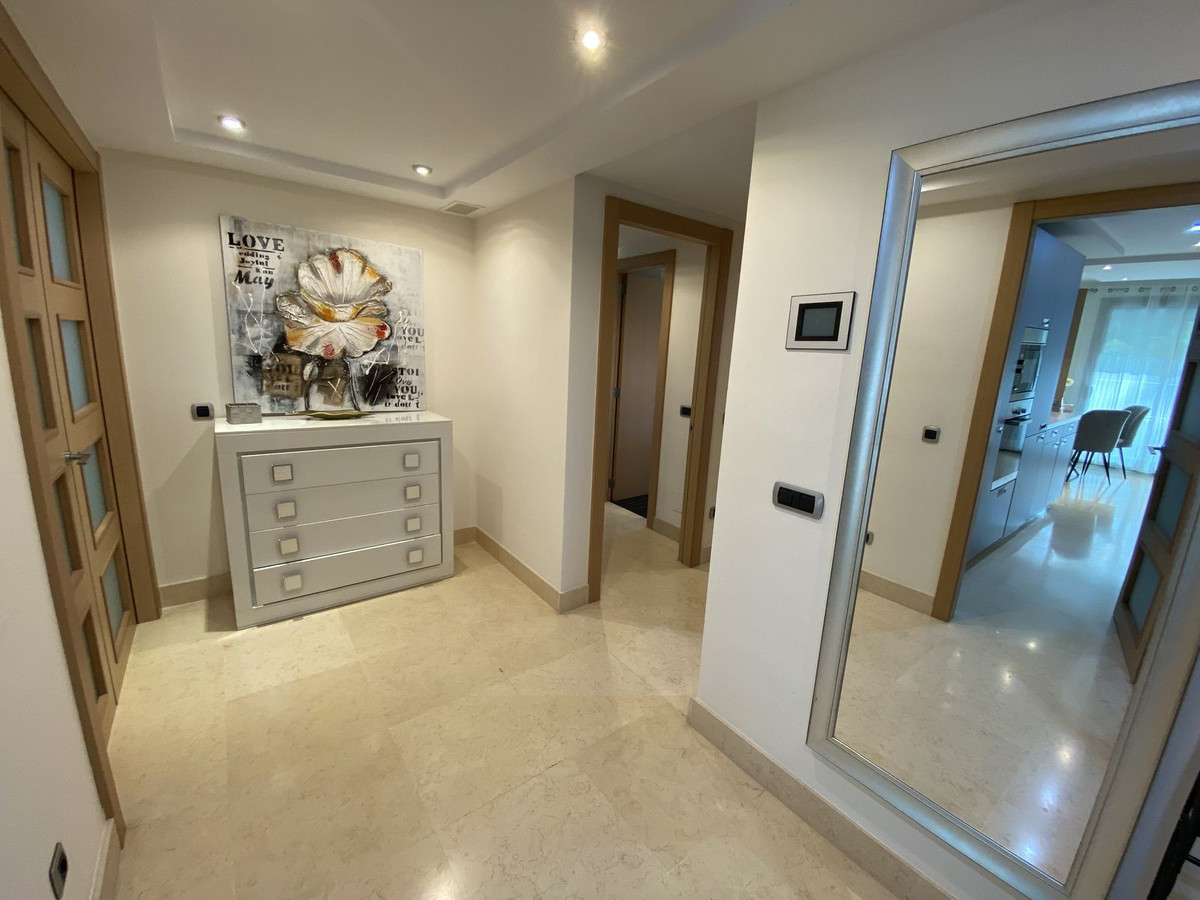 MODERN APARTMENT FOR SALE IN THE JARDINES DEL PRINCIPE URBANIZATION IN THE CENTER OF MARBELLA NEXT TO THE BEACH. EAST-WEST ORIENTATION, PARK VIEWS, BUILT AREA OF 169M2 (THE TERRACE 37M2), 2 PARKING SPACES, 1 STORAGE ROOM. IT HAS 2 BEDROOMS WITH 2 EN-SUITE BATHROOMS, 1 GUEST TOILET, LIVING-DINING ROOM, KITCHEN WITH MIELE APPLIANCES WITH BREAKFAST AREA, LAUNDRY ROOM, LARGE TERRACE WITH STORAGE AND VIEWS OF THE MUNICIPAL PARK. IN THE BATHROOMS, UNDERFLOOR HEATING IS INSTALLED. ELECTRIC SHUTTERS, COLD-HEAT AIR CONDITIONING, BUILT-IN CLOSETS. IN THE URBANIZATION, THERE IS A SWIMMING POOL, COMMON AREAS, 24-HOUR CONCIERGE, GYM FOR OWNERS.