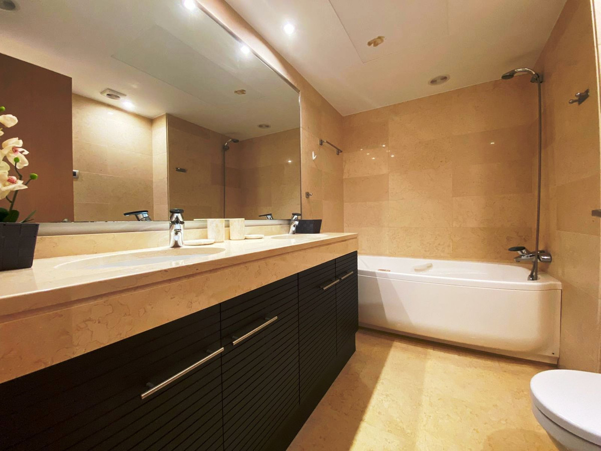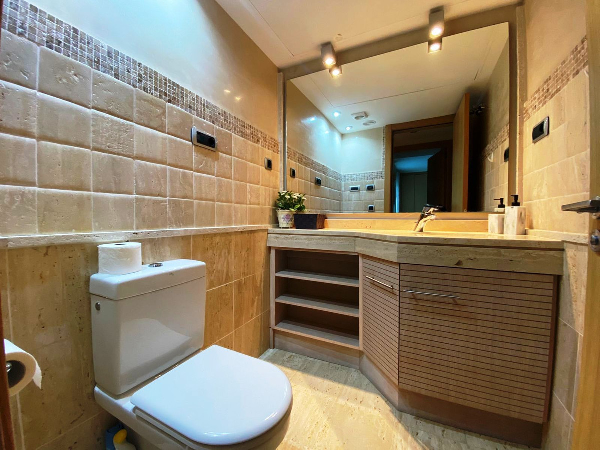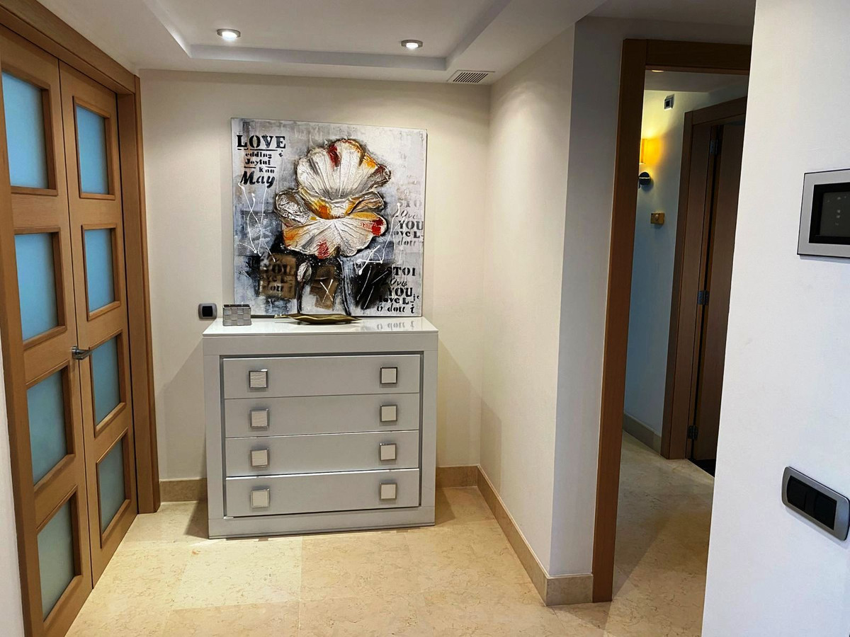 MODERN APARTMENT FOR SALE IN THE JARDINES DEL PRINCIPE URBANIZATION IN THE CENTER OF MARBELLA NEXT TO THE BEACH. EAST-WEST ORIENTATION, PARK VIEWS, BUILT AREA OF 169M2 (THE TERRACE 37M2), 2 PARKING SPACES, 1 STORAGE ROOM. IT HAS 2 BEDROOMS WITH 2 EN-SUITE BATHROOMS, 1 GUEST TOILET, LIVING-DINING ROOM, KITCHEN WITH MIELE APPLIANCES WITH BREAKFAST AREA, LAUNDRY ROOM, LARGE TERRACE WITH STORAGE AND VIEWS OF THE MUNICIPAL PARK. IN THE BATHROOMS, UNDERFLOOR HEATING IS INSTALLED. ELECTRIC SHUTTERS, COLD-HEAT AIR CONDITIONING, BUILT-IN CLOSETS. IN THE URBANIZATION, THERE IS A SWIMMING POOL, COMMON AREAS, 24-HOUR CONCIERGE, GYM FOR OWNERS.